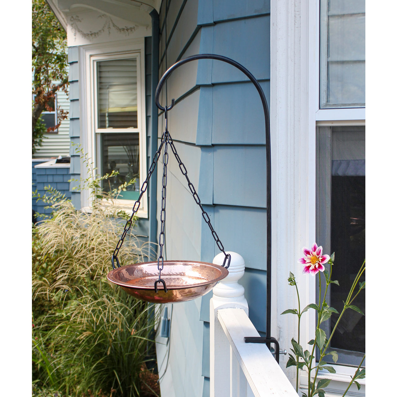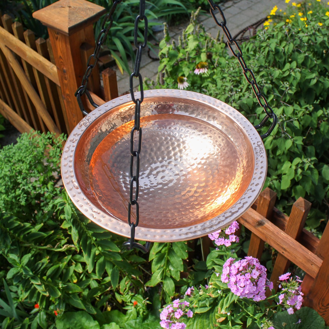 - The Hanging Copper Birdbath Bowl is a beautiful way to provide water in your backyard habitat year-round. This charming accessory makes a great gift for the avid gardeners, bird-watchers alike.