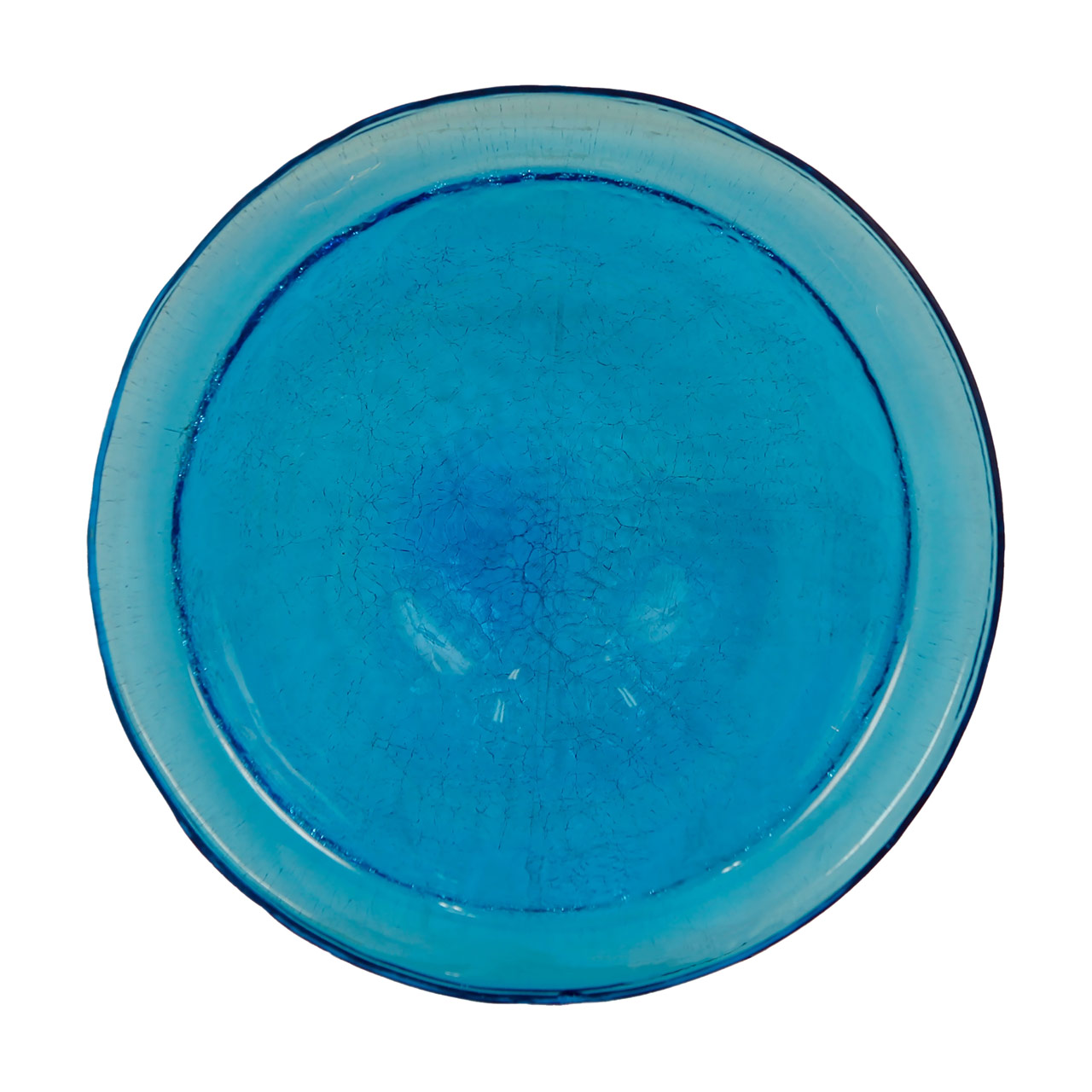 - Made of a brilliant Crackled Teal blue hand-blown glass, with color that will not fade in the sun. Since glass bowls are handmade, some color variation can be expected. Bowl measures 12 1/2" diameter x 2 1/2" D.