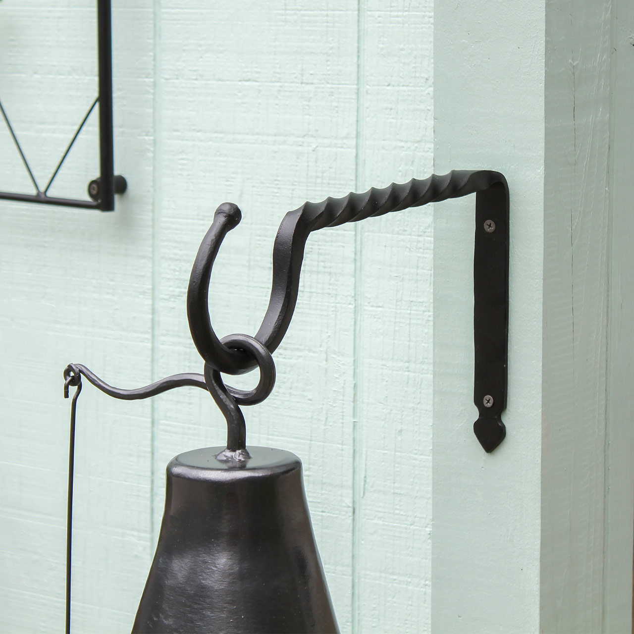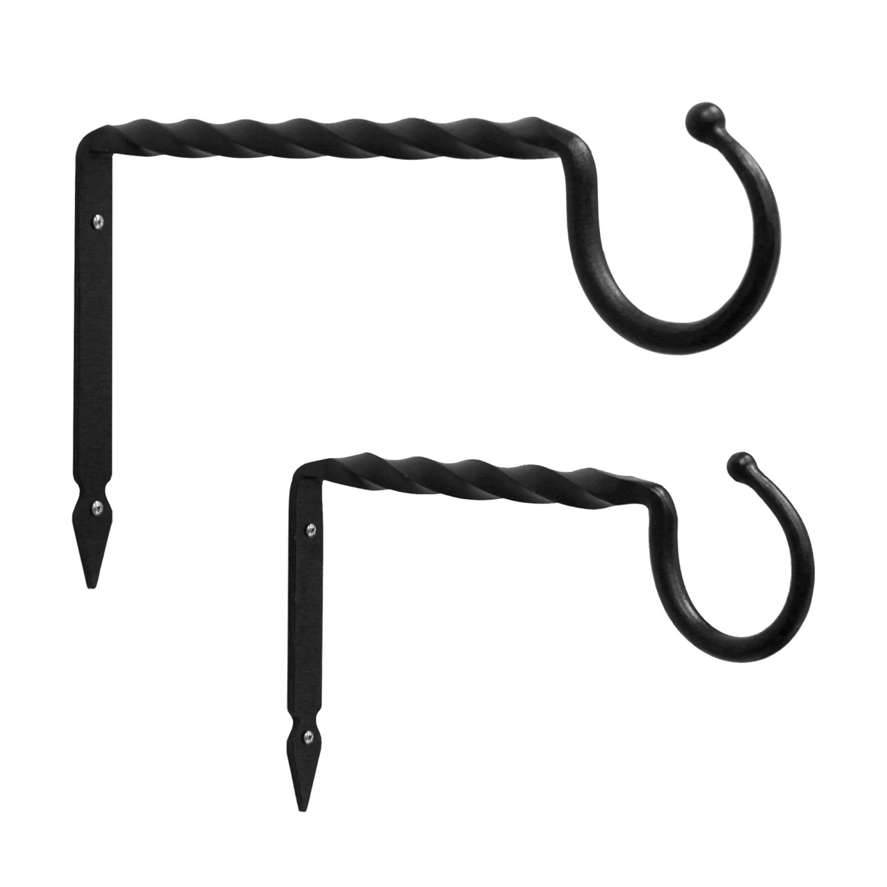 Hand-made with a traditional wrought iron technique, the Jumbo Bracket is made from a thick square iron section that is twisted and tapered to form a wide hook with a ball end. The large opening allows for hanging items with wide handles, such as large lanterns or baskets. This colonial-style hook is available in two sizes, 14" and 18" L. Achla Designs makes a wide variety of wrought iron hooks and brackets in all shapes and sizes for hanging your indoor and outdoor items. Employing traditional wrought iron techniques, we have brackets from large and decorative, to simple utilitarian j-hooks and extenders, in both square and round stock, single hooks, or multiple hook brackets. All our hooks and brackets are powder coated in Black or Graphite, to preserve the look of the natural wrought iron, while giving them maximum durability and weather resistance.