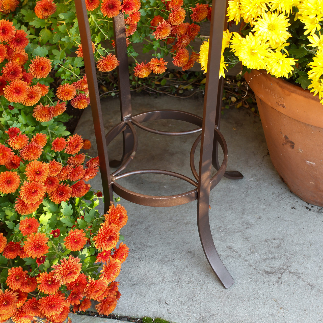 - Stand is forged from wrought iron with a high-quality, Roman bronze powder coated finish