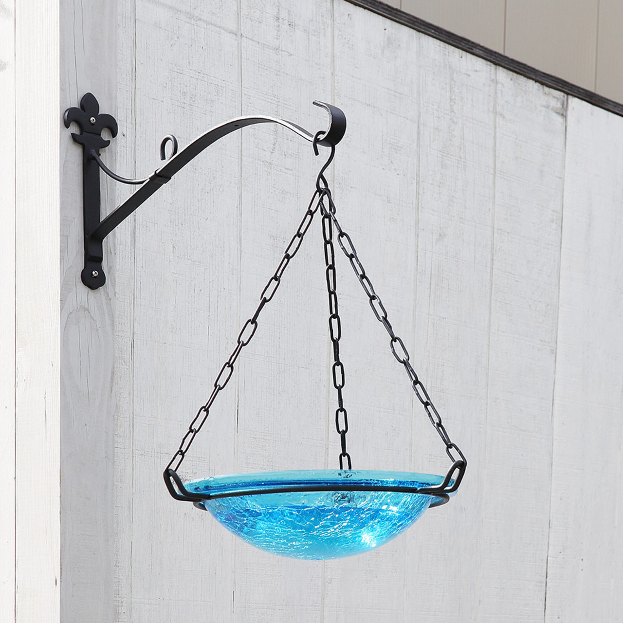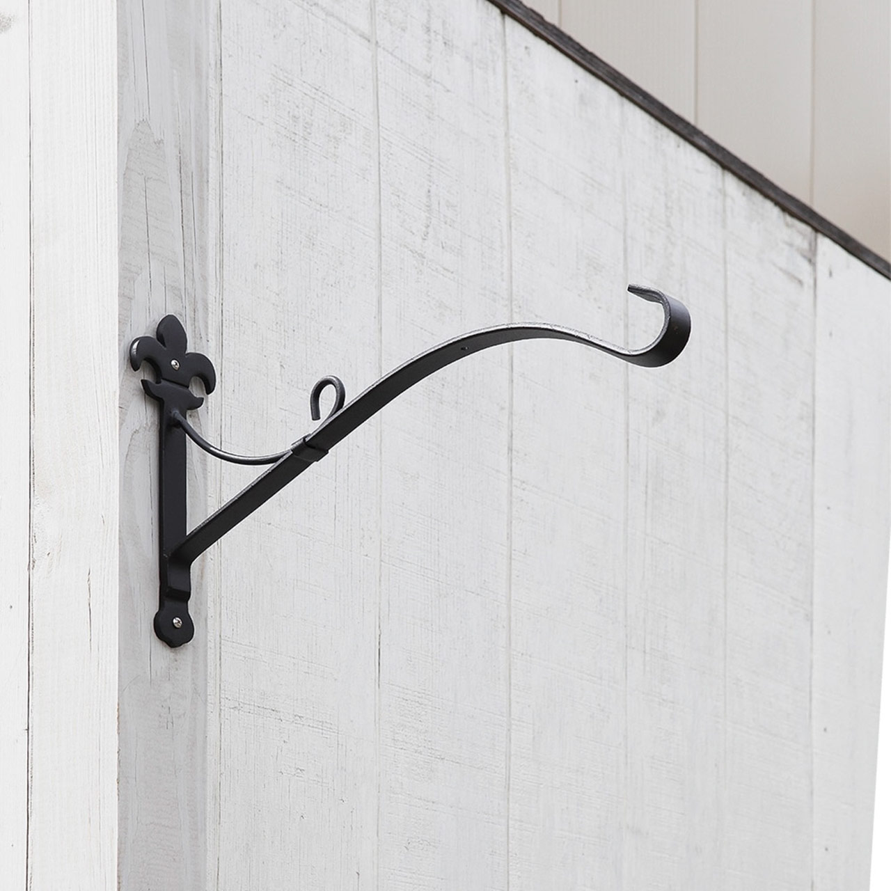 - Classic Fleur-de-Lis motif bracket designed for hanging large or heavy baskets and planters