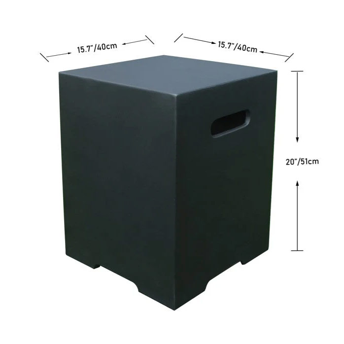 Hide your propane tank in style with this Square Propane Tank Cover, thoughtfully designed to bring both form and function to your outdoor space. Made from high-quality, glass-fiber reinforced concrete and finished in a clean light grey tone, this cover offers a durable, lightweight solution for concealing a standard 20 lb. liquid propane tank (tank not included). Measuring 15.7" W x 15.7" D x 20" H and weighing 33 lbs, it’s easy to move, simple to clean, and pairs perfectly with your fire pit setup for a seamless, polished look. Please refer to all included manuals and documentation before installation or use. Product packaging, instructions, and manuals may include more detailed information than what appears online. WARNING: This product can expose you to chemicals which are known to the State of California to cause cancer and birth defects or other reproductive harm. For more information, go to www.P65Warnings.ca.gov.