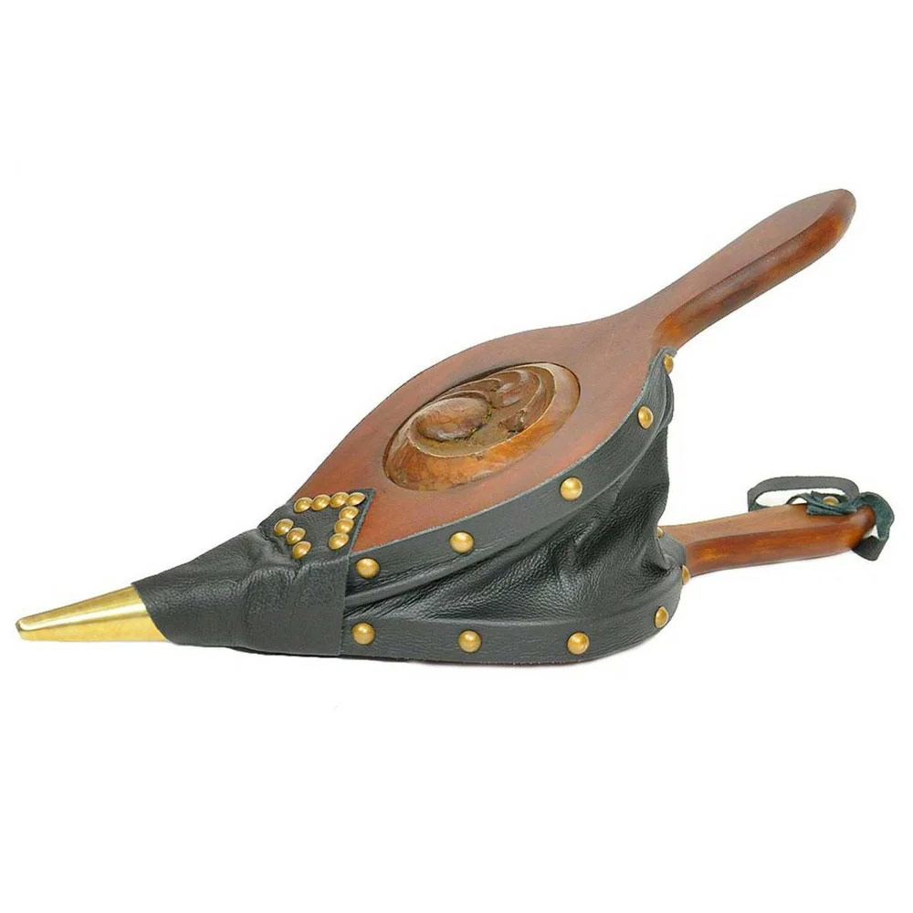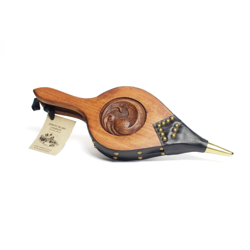 The Johnny Beard Alexandra Bellows showcases refined craftsmanship with a design that is both functional and decorative, providing a steady, powerful airflow to easily ignite and revive fires. Handcrafted with care, it is offered in Walnut, Cherry, Maple, Natural Oak, and Dark Oak finishes, each highlighting the beauty of fine woodwork. Every bellow is personally hand-signed by Johnny Beard, ensuring authenticity, artistry, and lasting quality. Founded in 1975 by Johnny and Rosemary Beard, the Johnny Beard Company has become America’s leading maker of handcrafted fireplace bellows, blending woodworking, leatherworking, and metalworking into functional yet artistic designs. Starting with just three styles made in a historic Oklahoma bank, the company grew rapidly and relocated to its Tulsa workshop in 1979, where production continues today. Known for their superior quality and creativity, Johnny Beard bellows are sold worldwide, featured in top publications, and each piece is still hand-signed by Johnny as a mark of excellence. Each and every bellow is hand made which means the sizing is different for every bellow!