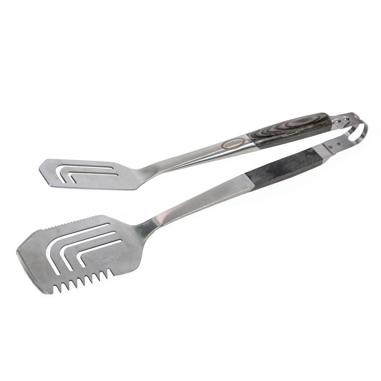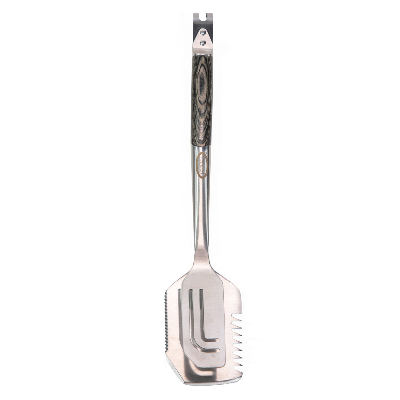 Meet the Louisiana Grills All-in-One Tool—a multitasking marvel with a clever double-spatula tong design that flips, grabs, chops, and tenderizes like a true grill-side wizard. From juicy steaks to delicate shrimp, it handles it all with precision, while its dual-edge spatula head stands ready for serious meat prep. Crafted from dependable stainless steel with a handsome wood-finished handle and a quick-access hanging loop, it’s easy to clean, dishwasher safe, and always up for whatever grilling adventure comes your way.