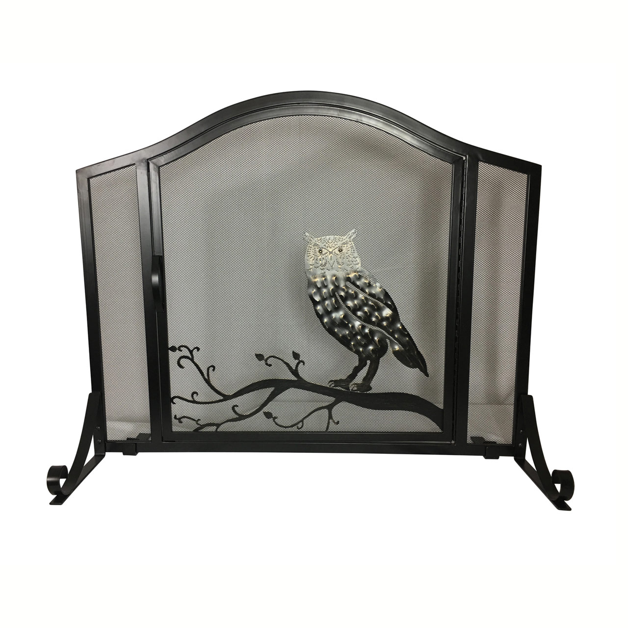 Arched Fireplace Screen with Door - Owl Design - 31"H x 38"W