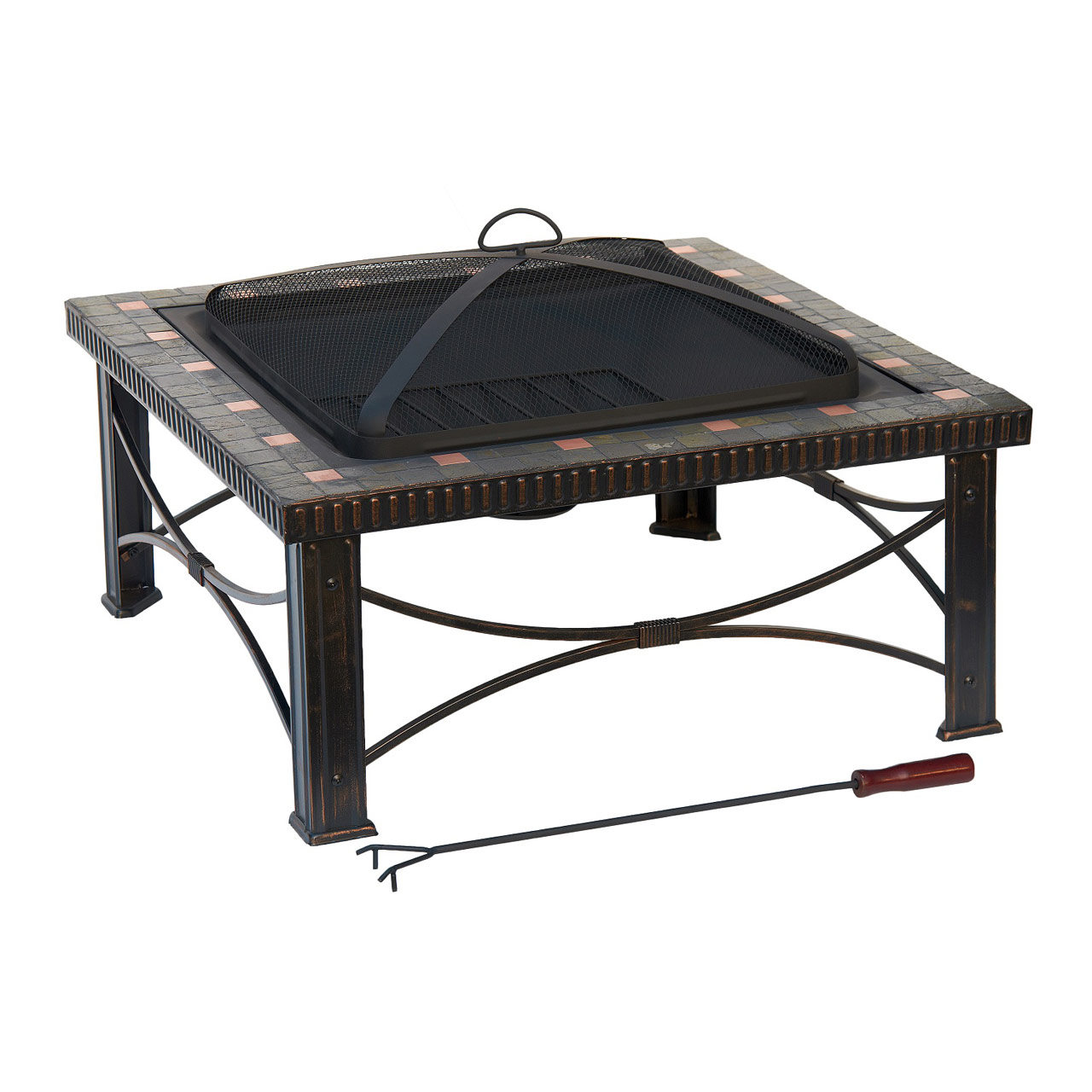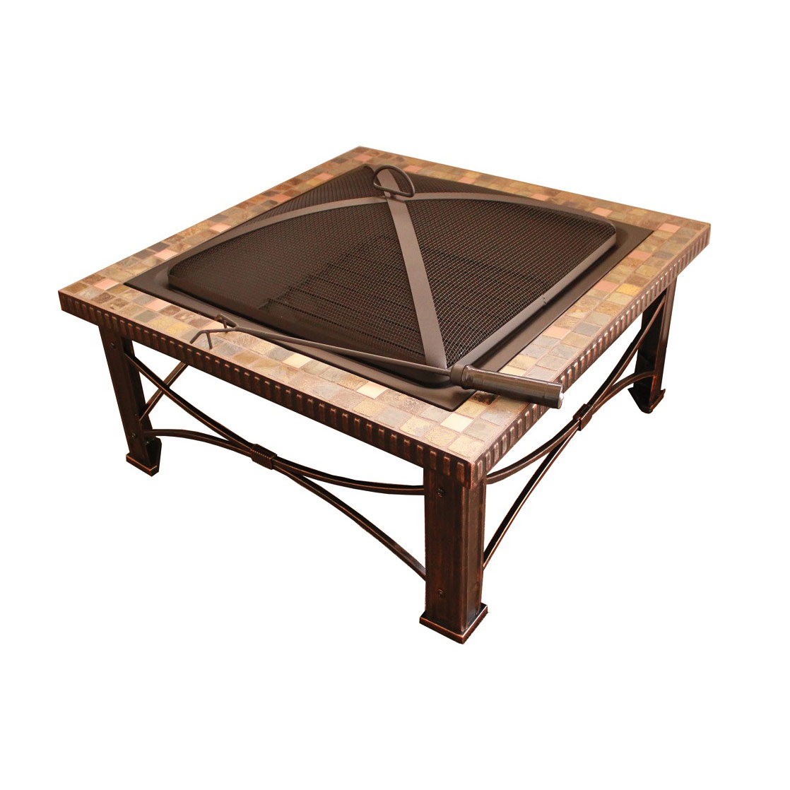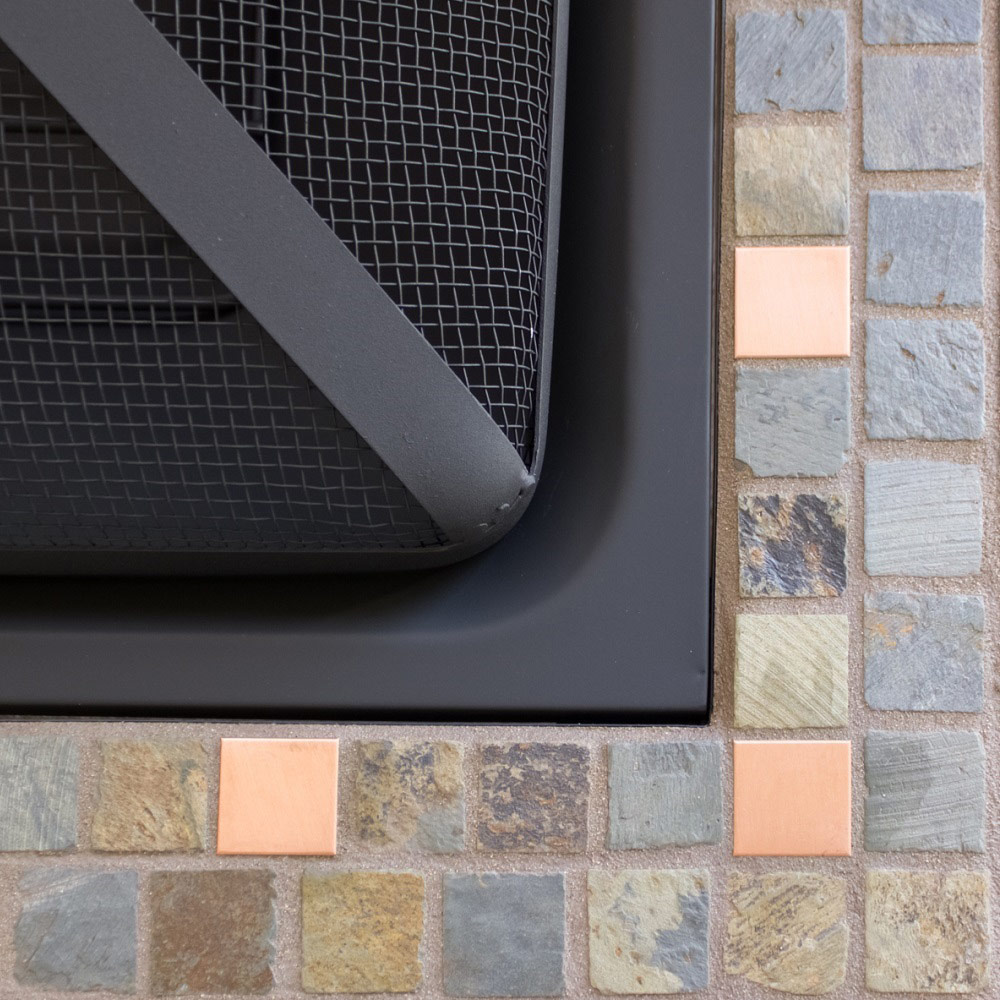 Bring refined style and natural texture to your outdoor space with the 30" Square Slate Tile Wood Burning Fire Pit. Designed as both a functional heat source and an elegant centerpiece, this fire pit features hand-laid genuine slate tiles accented with warm copper details for a distinctive, upscale look. Its square design adds a modern touch while blending seamlessly with a variety of patio and backyard settings.