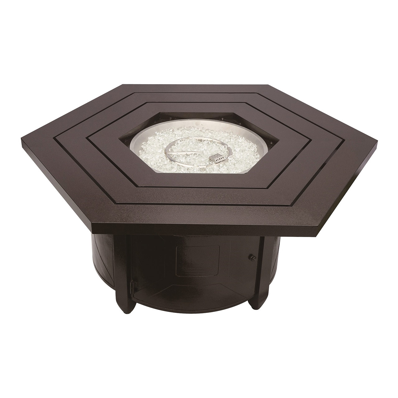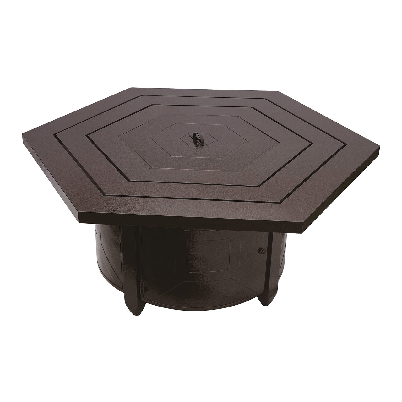 Add warmth and visual interest to your outdoor space with the Hammered Bronze Hexagon Fire Pit. Designed with a distinctive hexagon-shaped tabletop and a rich hammered bronze aluminum finish, this fire pit creates an eye-catching centerpiece for patios, decks, and backyard gatherings. Standing 23 inches tall with a spacious 45" hexagon tabletop, it offers both style and functionality.