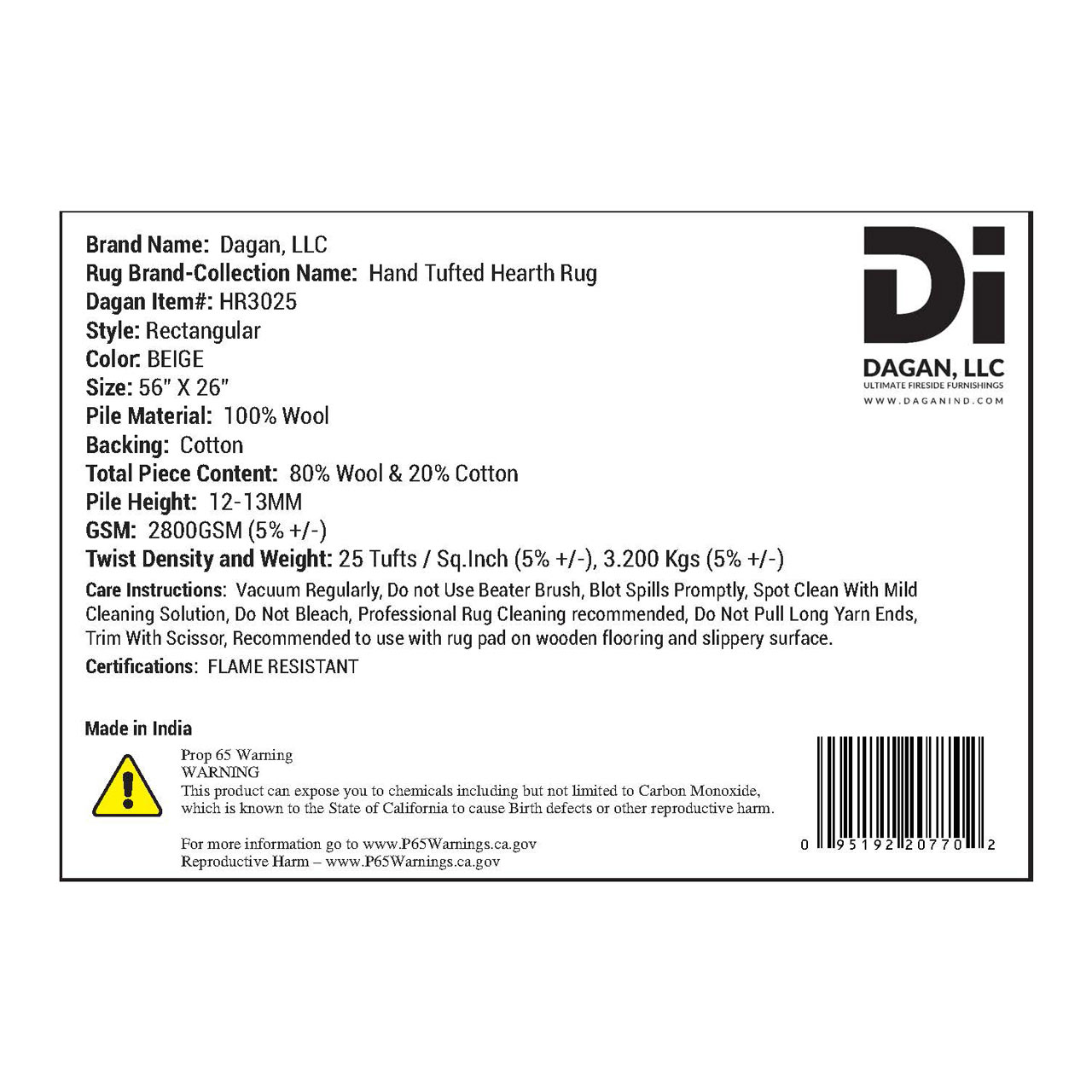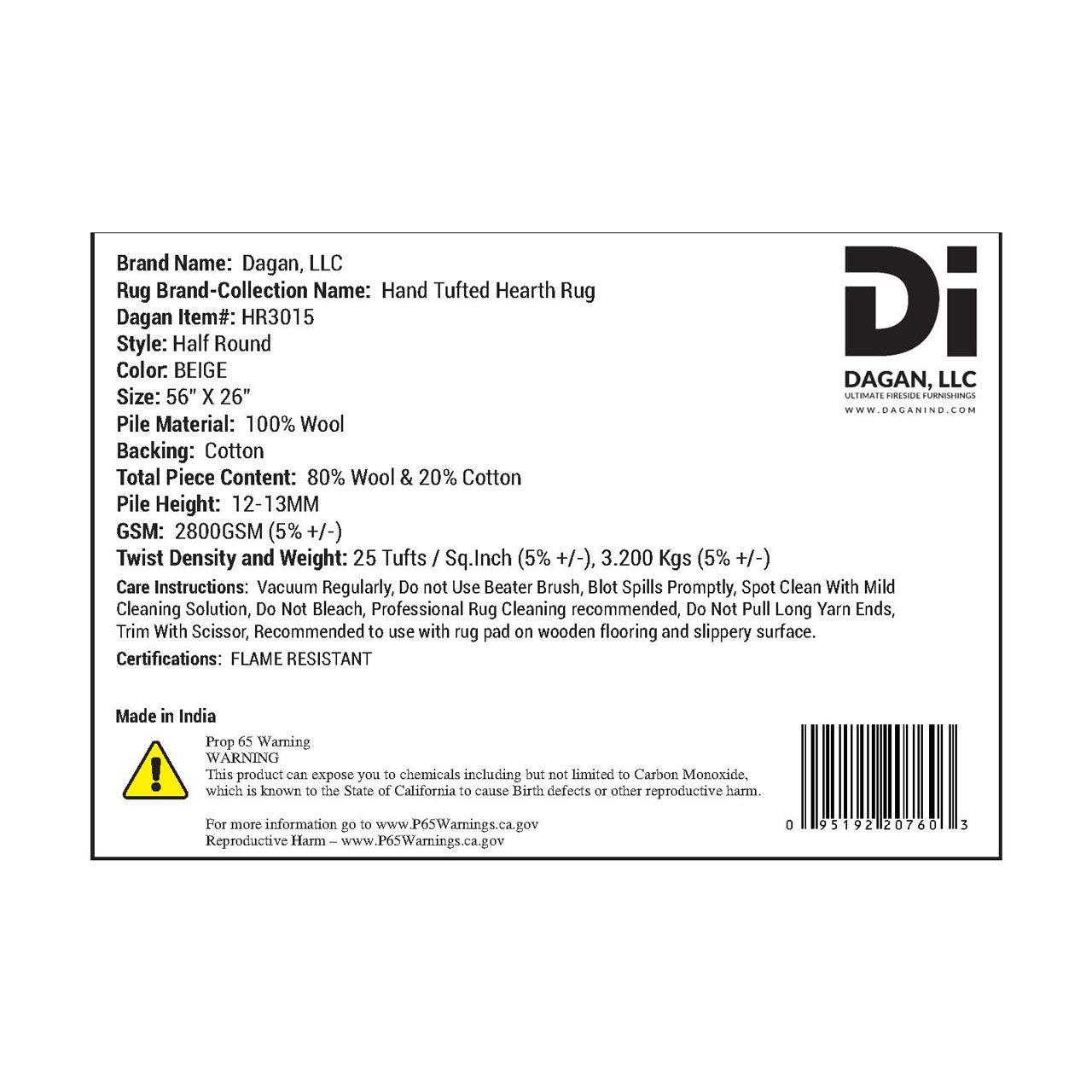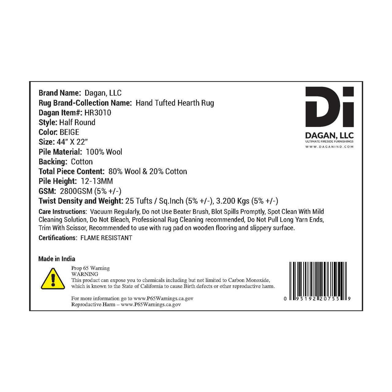 For added peace of mind, all Dagan hearth rugs meet or exceed Federal Law and CPSC requirements outlined in 16 CFR Part 1631 (FF 2-70) for surface flammability of small carpets and rugs. Intended for indoor use, this beige hearth rug delivers dependable fire safety protection while enhancing the comfort and appearance of your fireplace space.