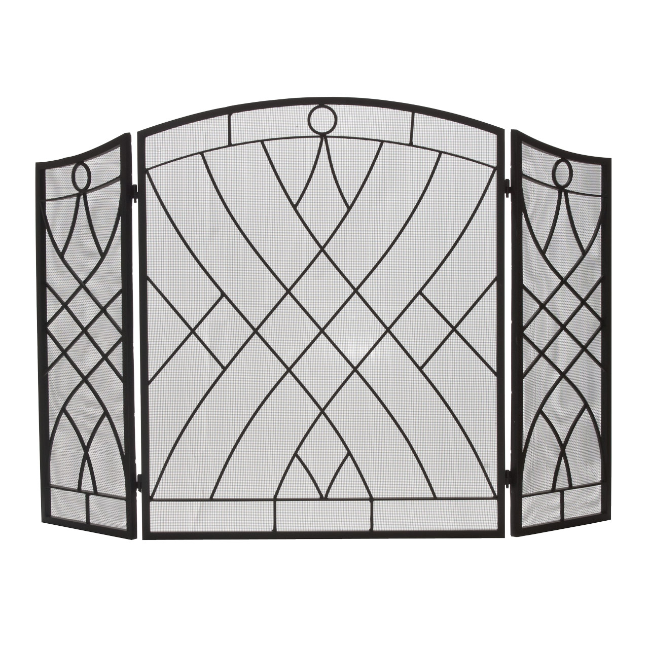 Enhance your hearth with the Dagan Three Fold Black Wrought Iron Arched Fireplace Screen, designed to offer both elegance and dependable protection. This three-panel arched screen features a high-quality wrought iron frame with a beautiful woven design that adds texture and visual appeal to any fireplace setting. Its foldable structure allows for easy placement and adjustment, while the sturdy construction helps shield your home from stray sparks and embers. Measuring 34 x 51.5 inches (H x W) and weighing 24 pounds, this decorative and durable screen is a perfect addition to traditional or modern hearth designs.