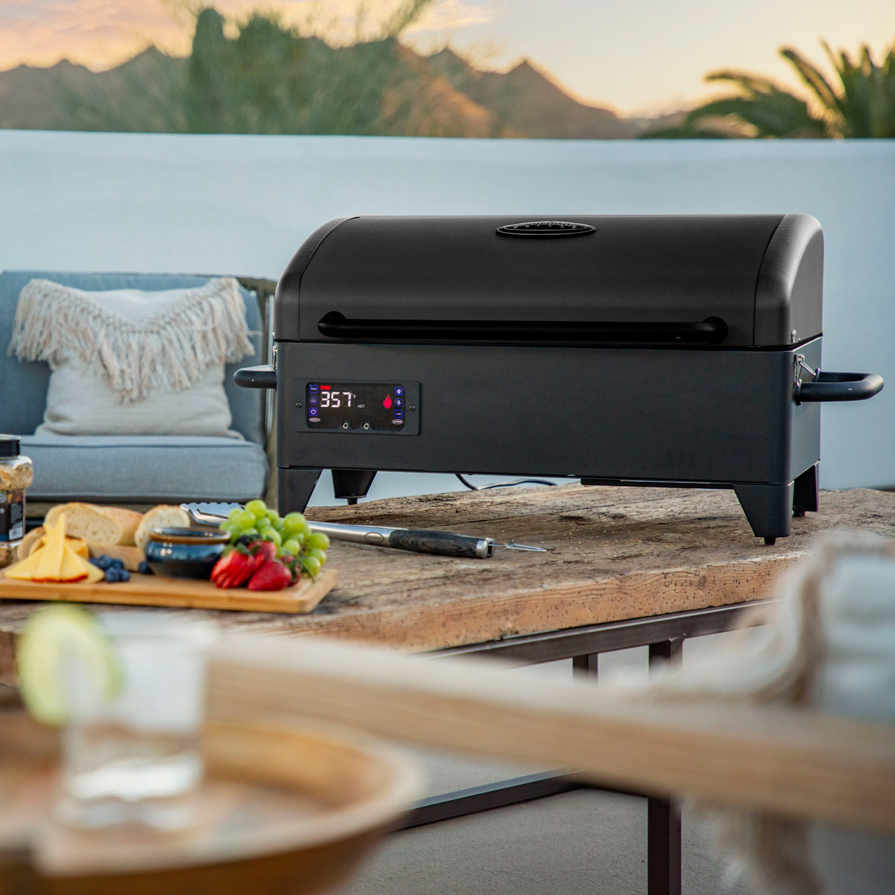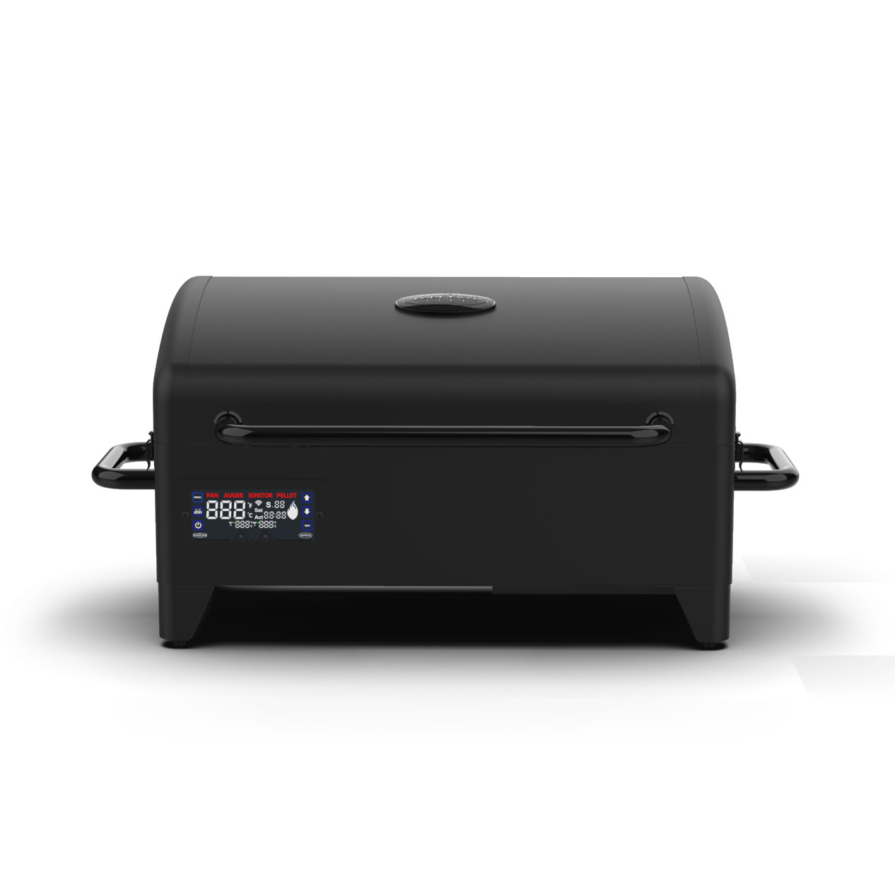 The Louisiana Grills Black Label 300 redefines portable outdoor cooking with the sophistication and performance of a premium wood pellet grill. Designed for culinary precision, this grill features 333 square inches of cooking space and a temperature range of 180° to 500°F, giving you the versatility to grill, smoke, bake, roast, or sear—wherever you go. The patented Pressurized Cooking System™ and rear exhaust design ensure even heat and smoke circulation for flawless results every time. Equipped with WiFi and Bluetooth digital control, a programmable meat probe, built-in smoke rack, one-touch auto-start ignition, and a 10-pound hardwood pellet hopper, the Black Label 300 delivers luxury in a portable, durable design. Constructed from heavy-duty steel with a black sand powder coat finish and black stainless-steel handles, it comes complete with porcelain-coated steel grates and a grill cover.