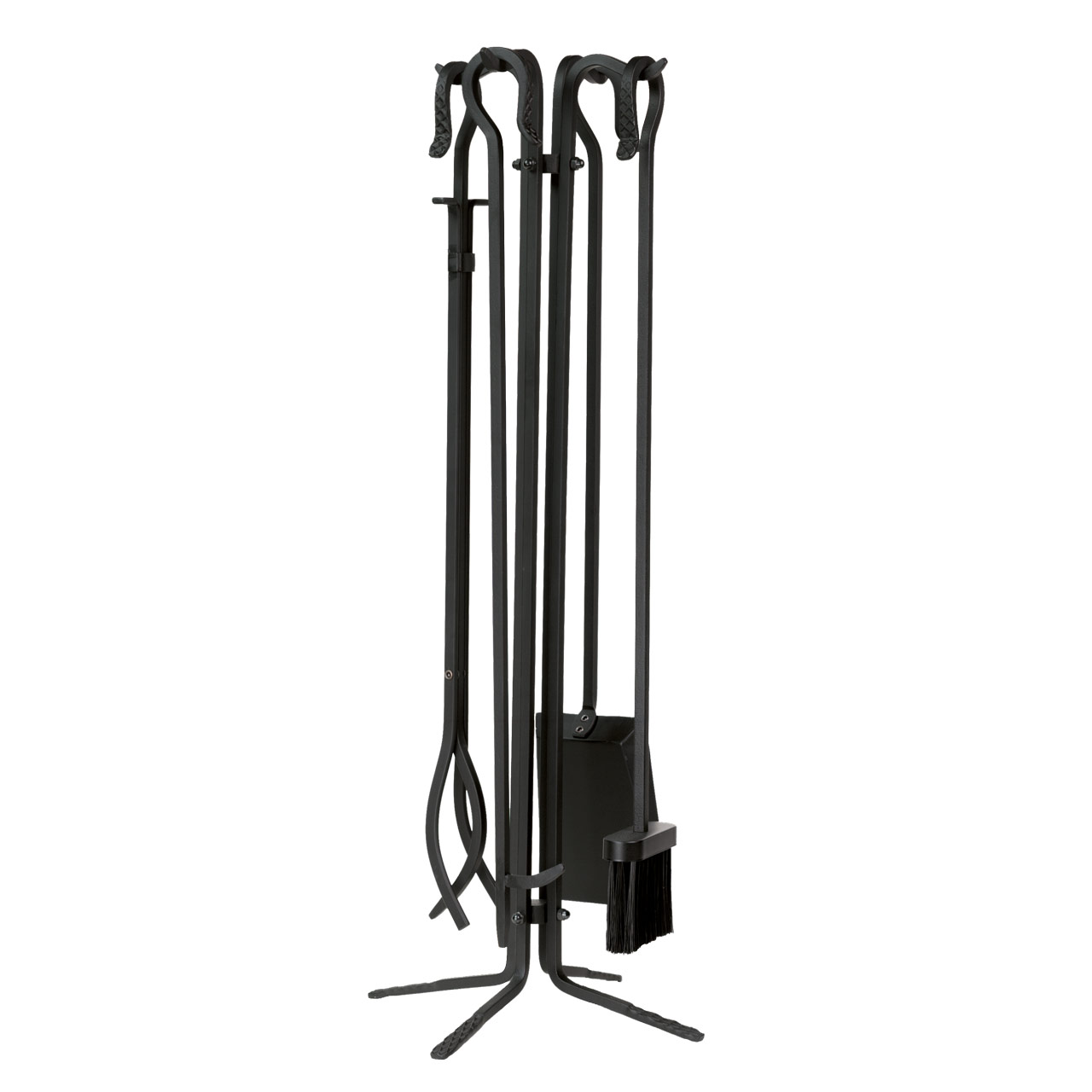 Black Wrought Iron Fireplace Tool Set - 5 Piece