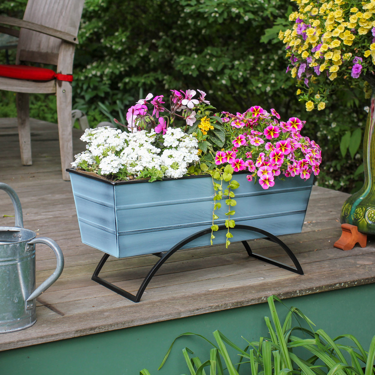 - Medium Bloom Box measures 24-in L x 9 1/2-in W x 7 1/2-in H, made of Galvanized Steel with a Blue patina finish