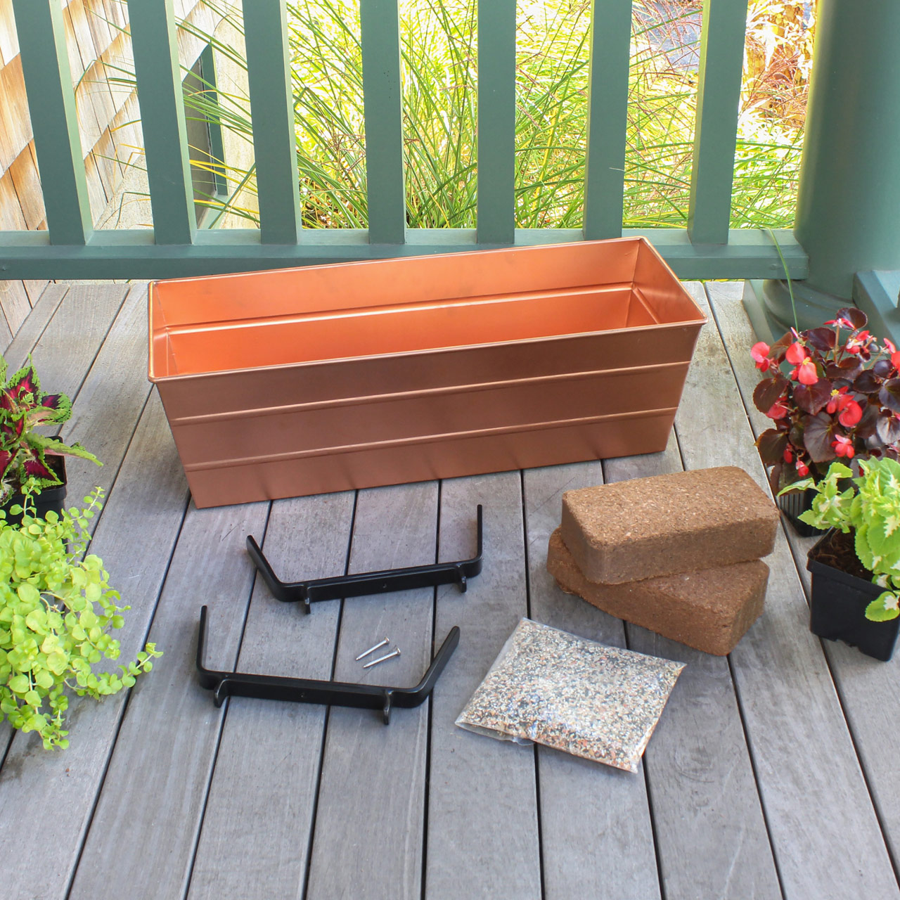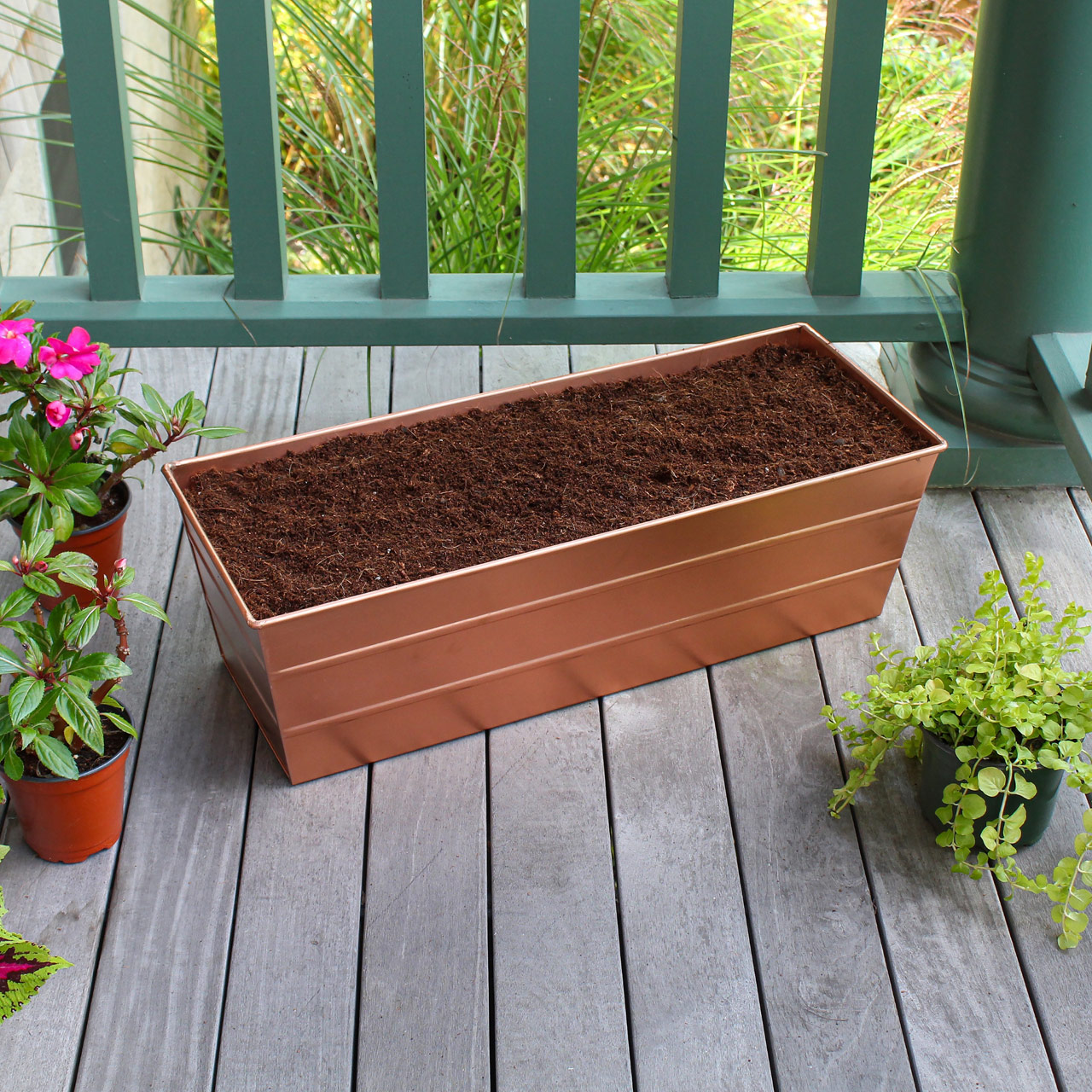 - Medium Bloom Box measures 24-in L x 9 1/2-in W x 7 1/2-in H, made of Galvanized Steel with a Copper plated finish that will develop a natural patina over time