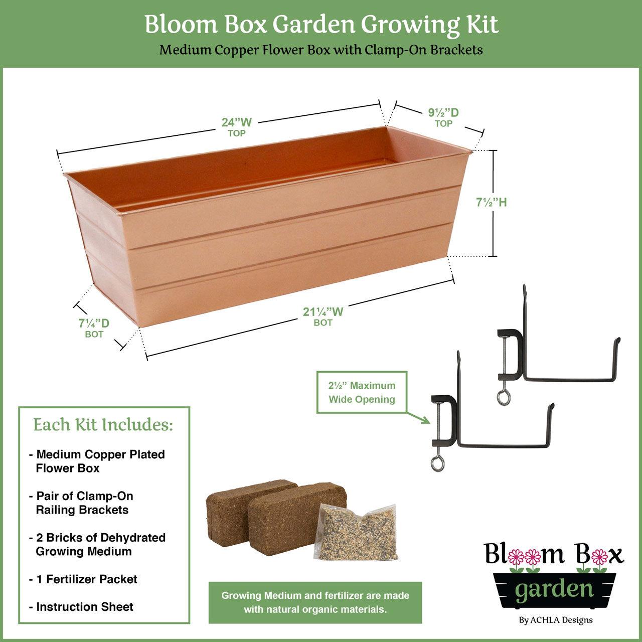 Bloom Box Garden Growing Kit, Medium Copper with Clamp-On Brackets