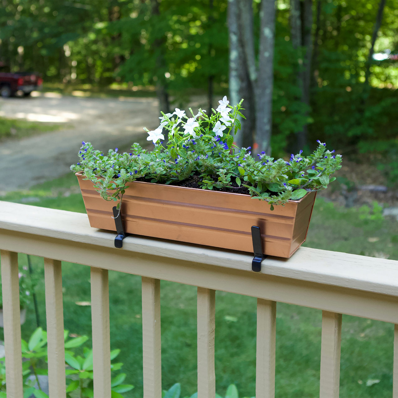 - Designed for 2"x 6"flat-top deck or handrails, two wrought iron Railing Brackets hold the flower box, place brackets at desired distance apart and attach with screws provided