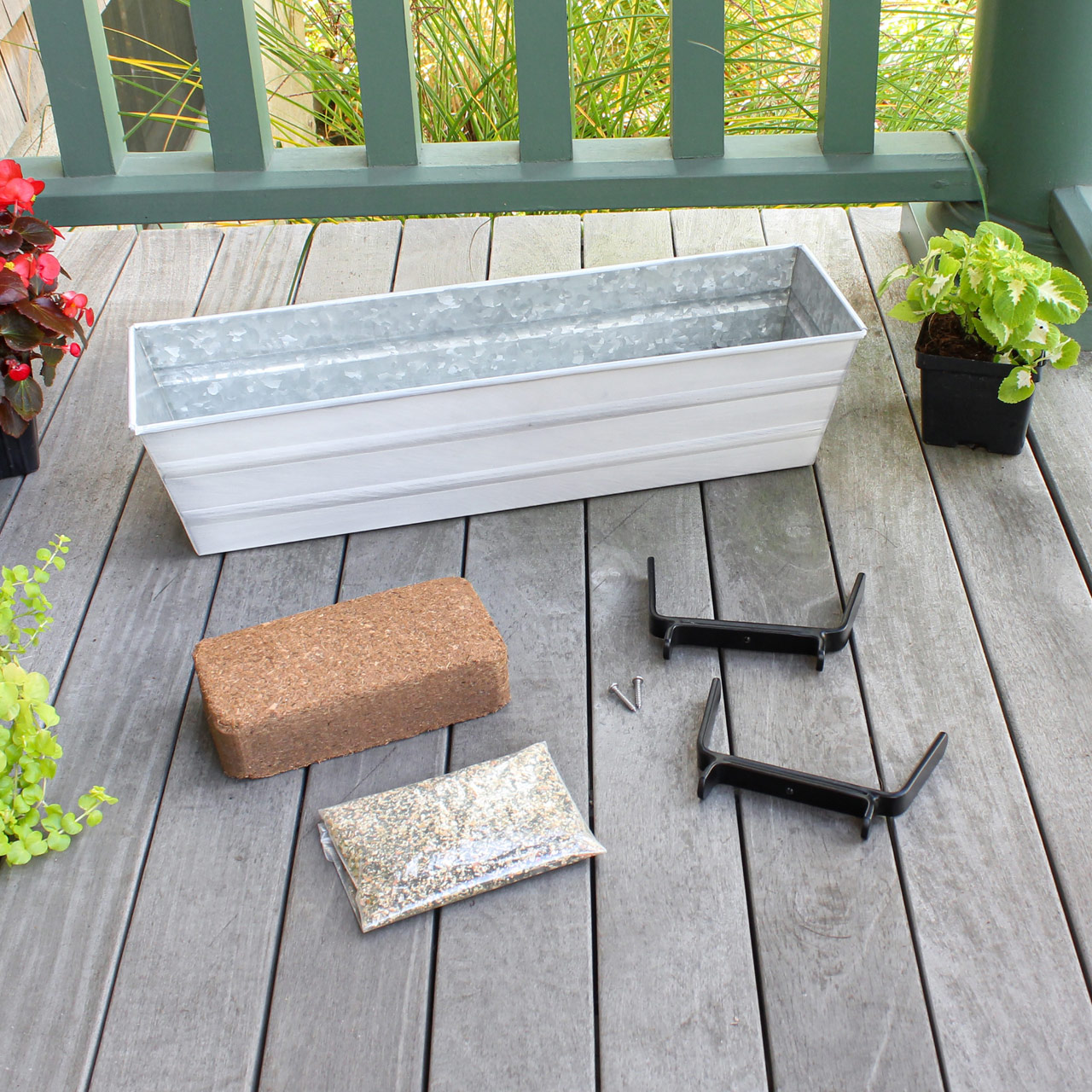 - Designed for 2"x 4" flat-top deck or handrails, two wrought iron Railing Brackets hold the flower box, place brackets at desired distance apart and attach with screws provided