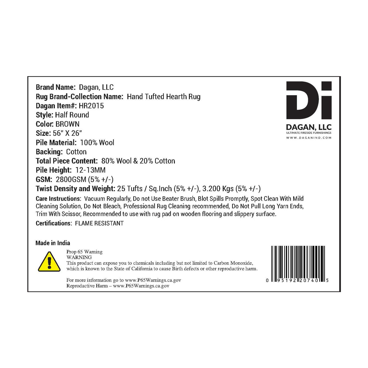 Crafted using a hand-tufted construction, this hearth rug offers long-lasting durability and a dense, cushioned feel underfoot. It features a pile height of approximately 12–13 mm, a substantial 2800 GSM weight, and a twist density of 25 tufts per square inch for added strength and resilience. A cotton backing provides stability and helps the rug maintain its shape over time. Because each piece is hand-tufted, minor size variations may occur. The rug is available in both half-round and rectangular styles, including sizes such as 44 inches by 22 inches and 56 inches by 28 inches, making it suitable for a variety of hearth dimensions.