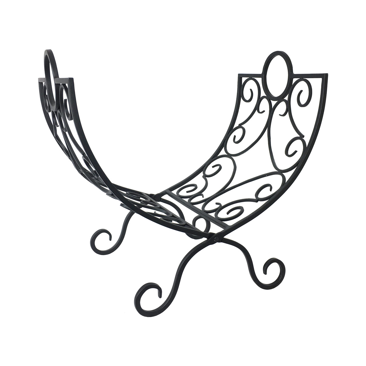Grey Wrought Iron Indoor Log Holder with Suede Carrier
