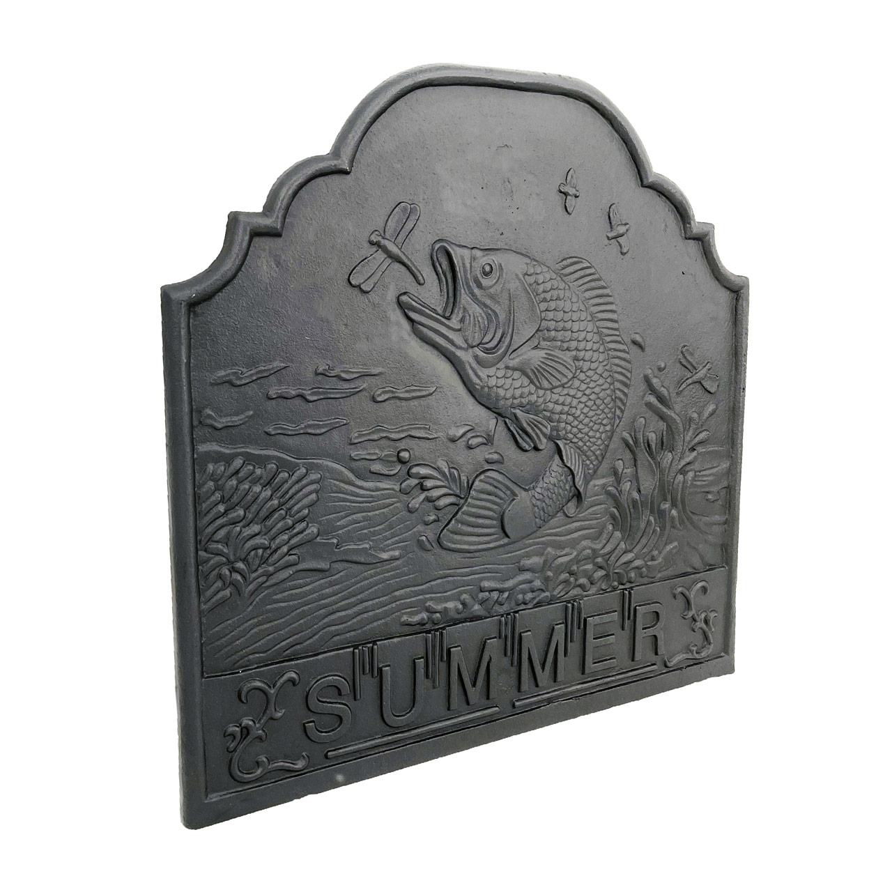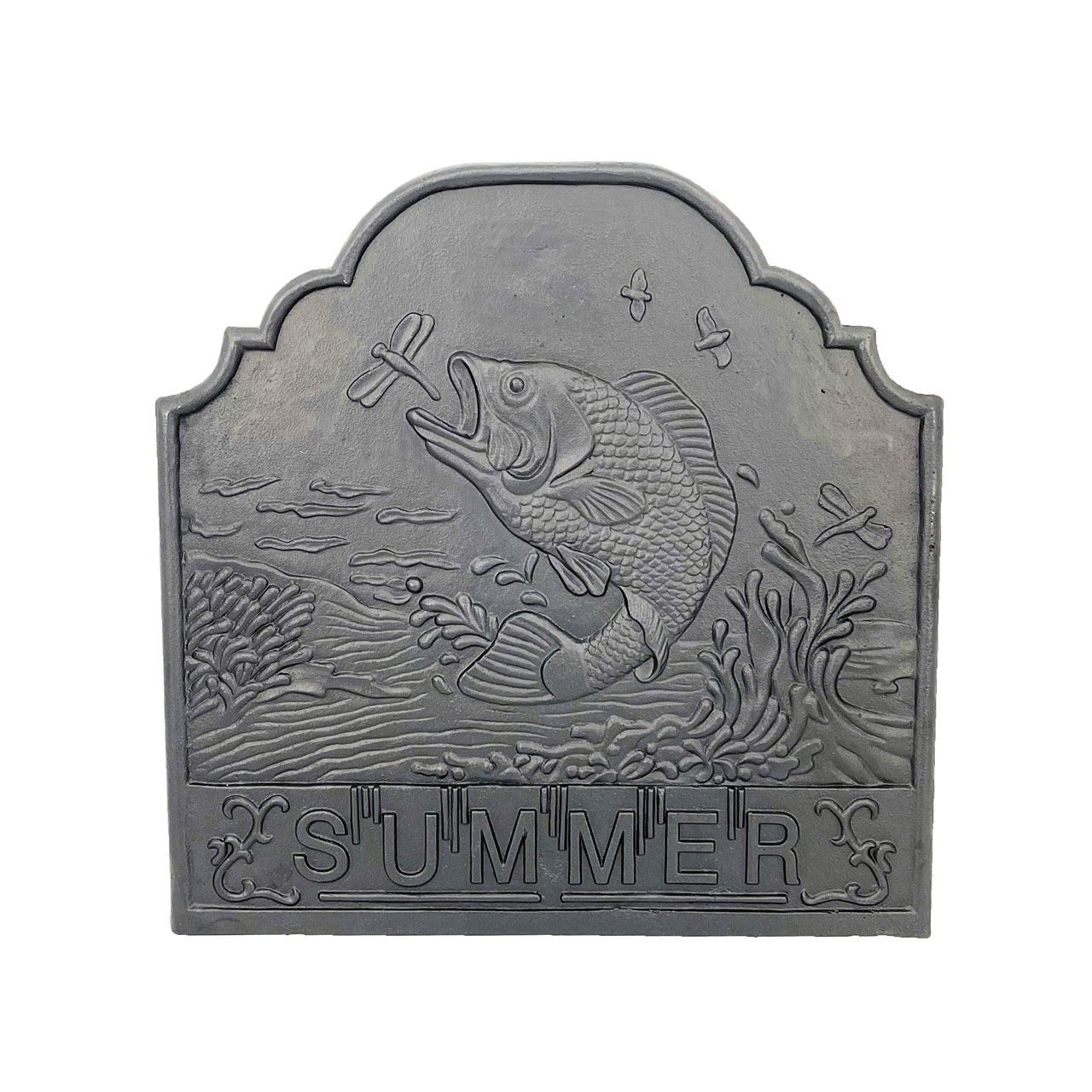 The Dagan Black Cast Iron Summer Fireback, 20.75x20.75-Inches, brings both beauty and function to your fireplace. Featuring an elegant Summer-themed design, this decorative fireback enhances your hearth while boosting heating efficiency. Crafted from durable black cast iron, it reflects heat back into your living space instead of allowing warmth to escape up the chimney. Built for lasting performance, it’s an attractive and practical upgrade for any fireplace. Fireback only; feet sold separately.
