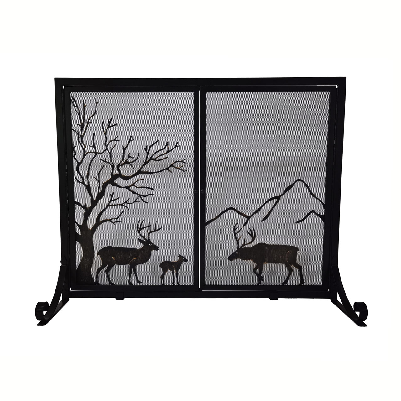 Fireplace Screen with Doors - Deer Design - 31.5"H x 40"W x 14"D