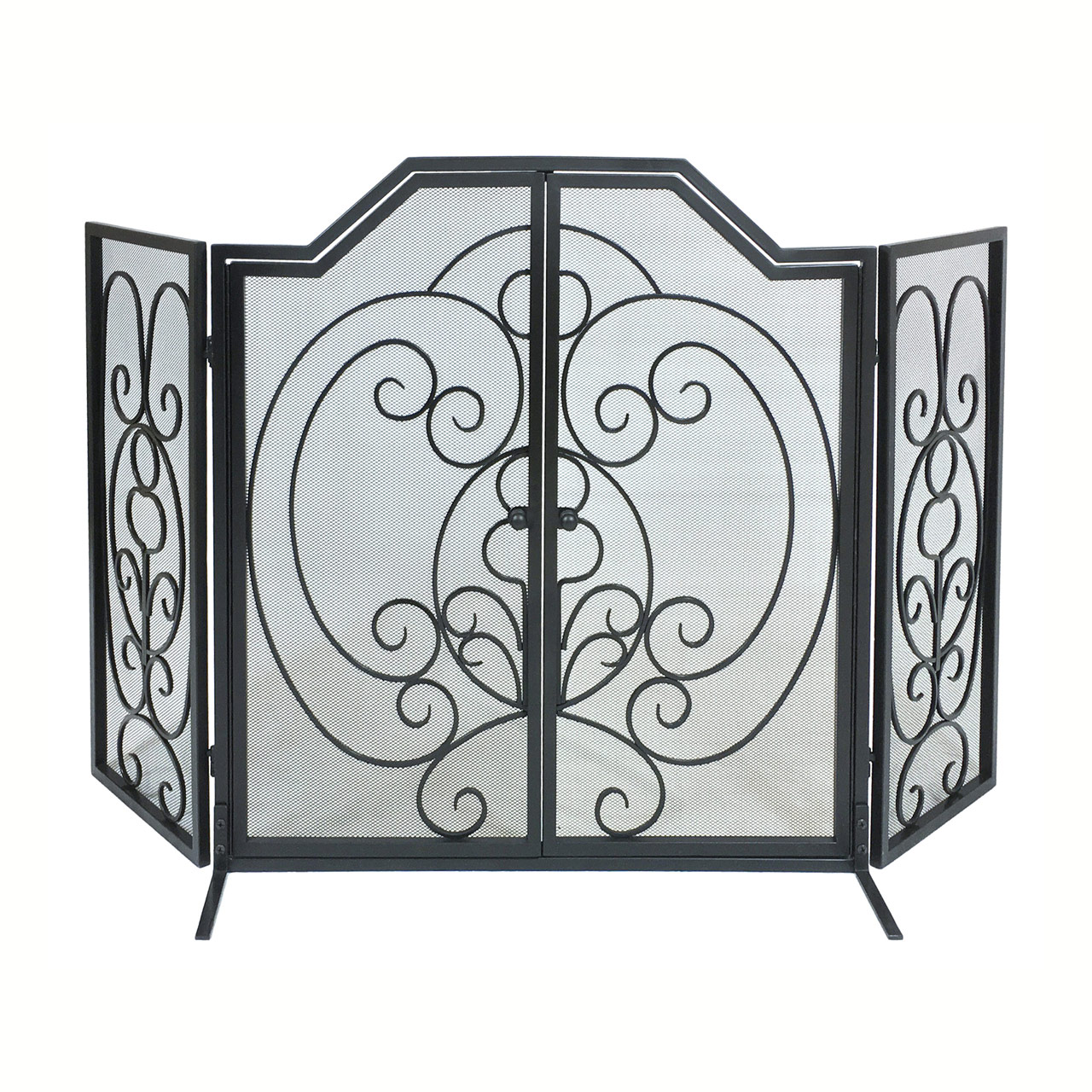 Fireplace Screen with Doors - Scroll Design - 32"H x 55"W