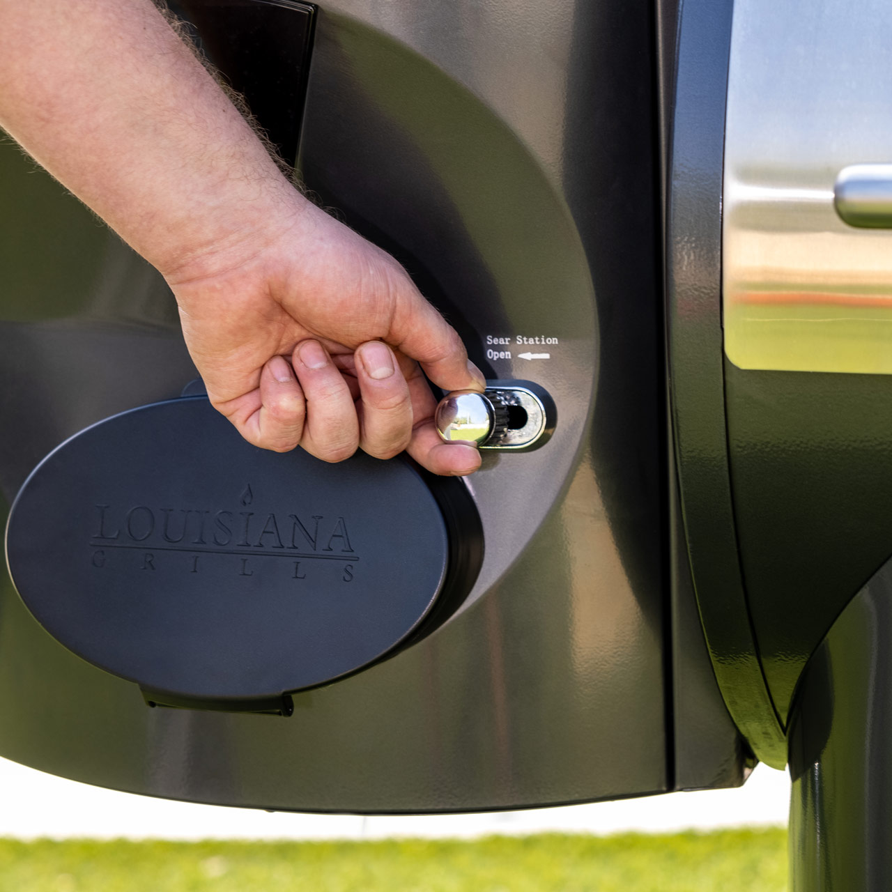 The Founders Series Legacy 800 by Louisiana Grills sets a new benchmark for backyard cooking, blending over two decades of pellet grilling heritage with state-of-the-art innovation. Honoring founder Dan Thiessen, this grill delivers elite performance through thoughtful engineering and high-end craftsmanship. At the core is the patented Pressurized Cooking System™, which ensures even heat and smoke distribution via a rear exhaust, while SearTech™ technology allows seamless switching between smoking, grilling, and high-heat searing—up to 1,000°F with the simple pull of a lever. The LG Smart Touch Control Pad redefines precision with digital temperature control ranging from 180° to 600°F and wireless connectivity via Wi-Fi and Bluetooth , easily managed through the Louisiana Grills app. With 846 square inches of cooking space, a heavy-duty 304 stainless steel body, stainless steel grates, and a griddle insert, this grill is built to handle any culinary challenge. Additional features include a 29-pound pellet hopper with viewing window, collapsible stainless steel front and side shelves with tool hooks and a towel bar, built-in grill light, two meat probes, and four caster wheels (two locking, two sport). Fueled by 100% hardwood pellets and backed by a five-year warranty, the Legacy 800 is the pinnacle of luxury outdoor cooking.