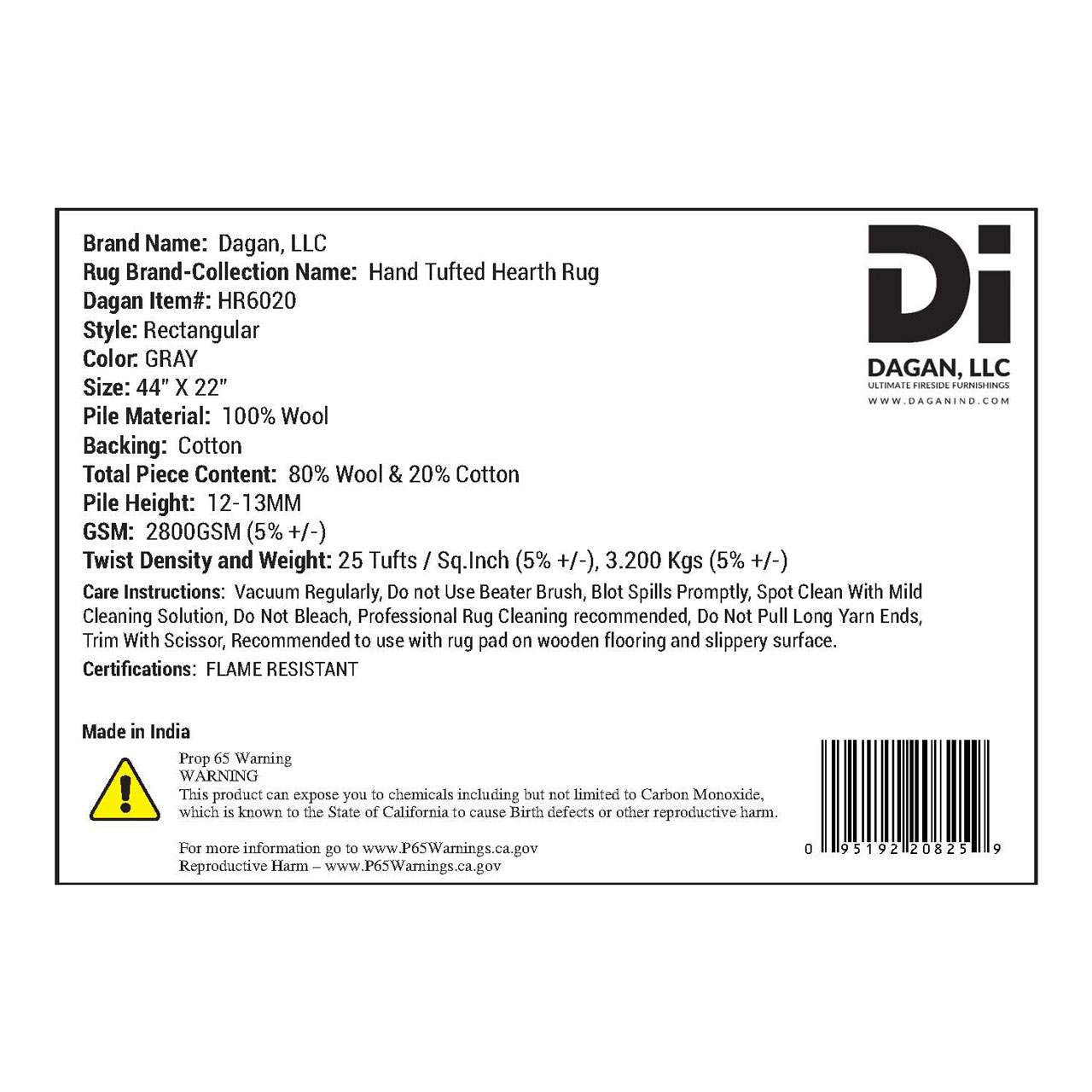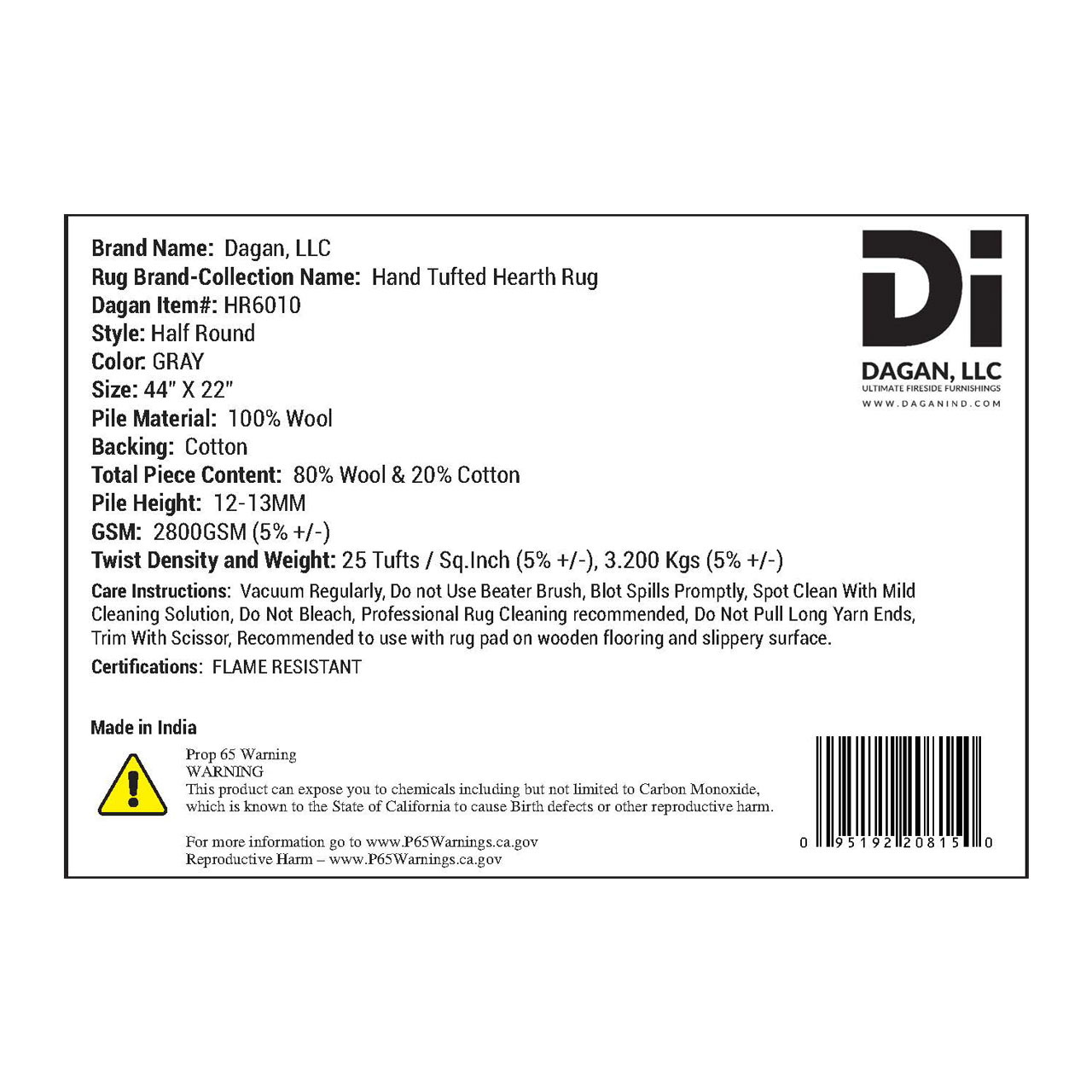 All Dagan hearth rugs meet or exceed Federal Law and CPSC requirements (16 CFR Part 1631, FF 2-70) for surface flammability of small carpets and rugs. Intended for indoor use, this rug ensures dependable fire protection while enhancing the comfort and visual appeal of your fireplace space.