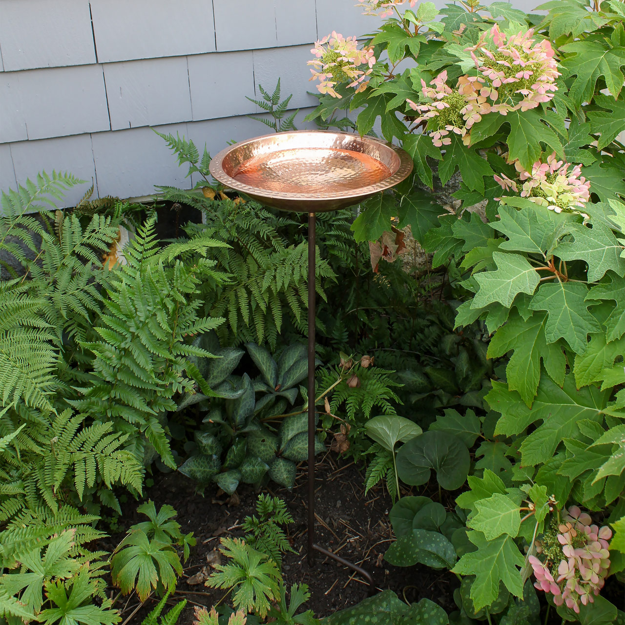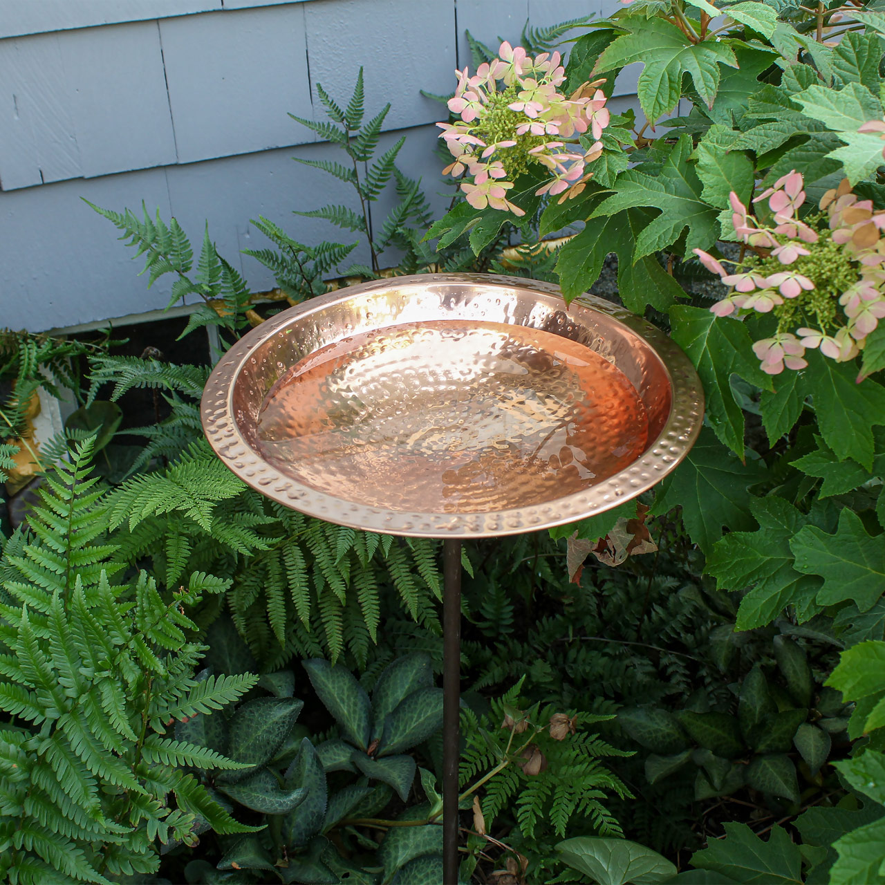 - This Hammered Copper Birdbath bowl is a classic garden accent, the wide rim lets birds perch while drinking and bathing for close observation