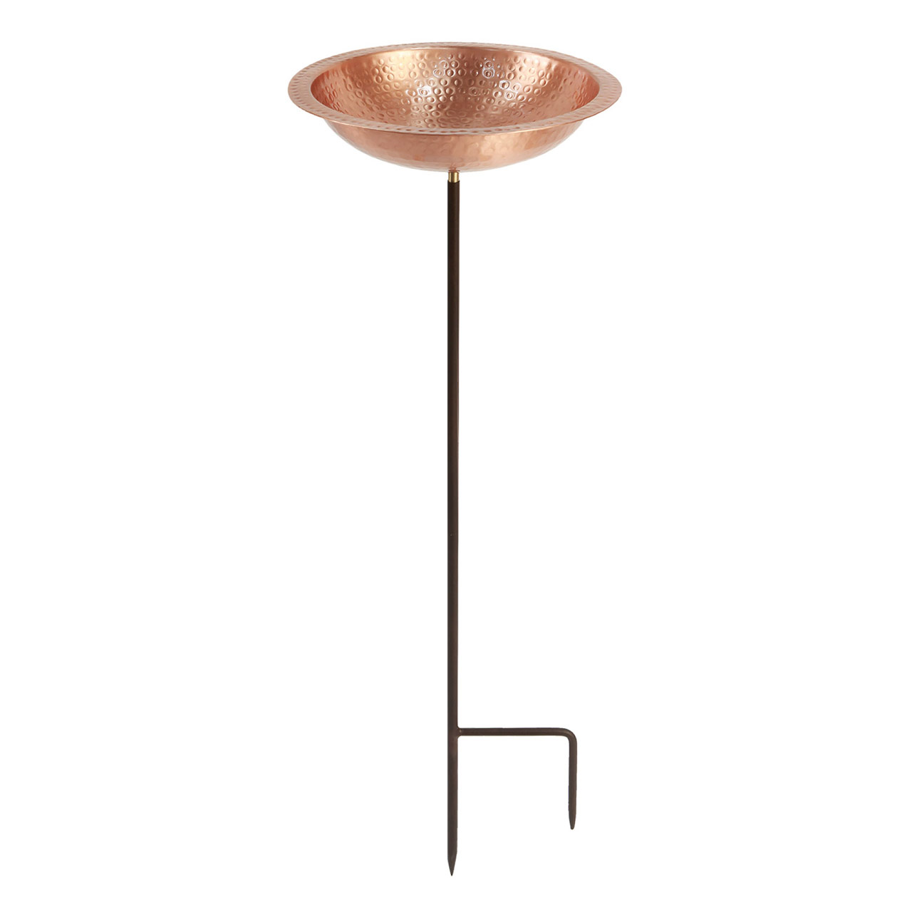 - This simple Hammered Solid Copper Birdbath is a classic garden accent for garden beds and borders, shallow bowl with a wide rim for birds to perch while drinking and bathing