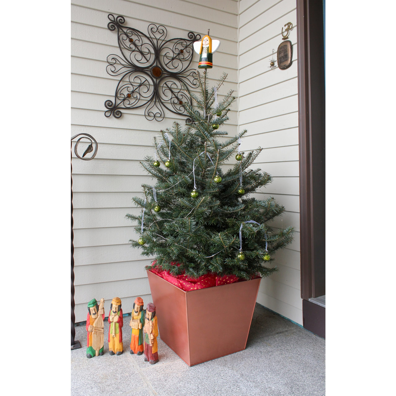 - Made of galvanized steel with copper plated finish that will develop a natural patina over time outdoors