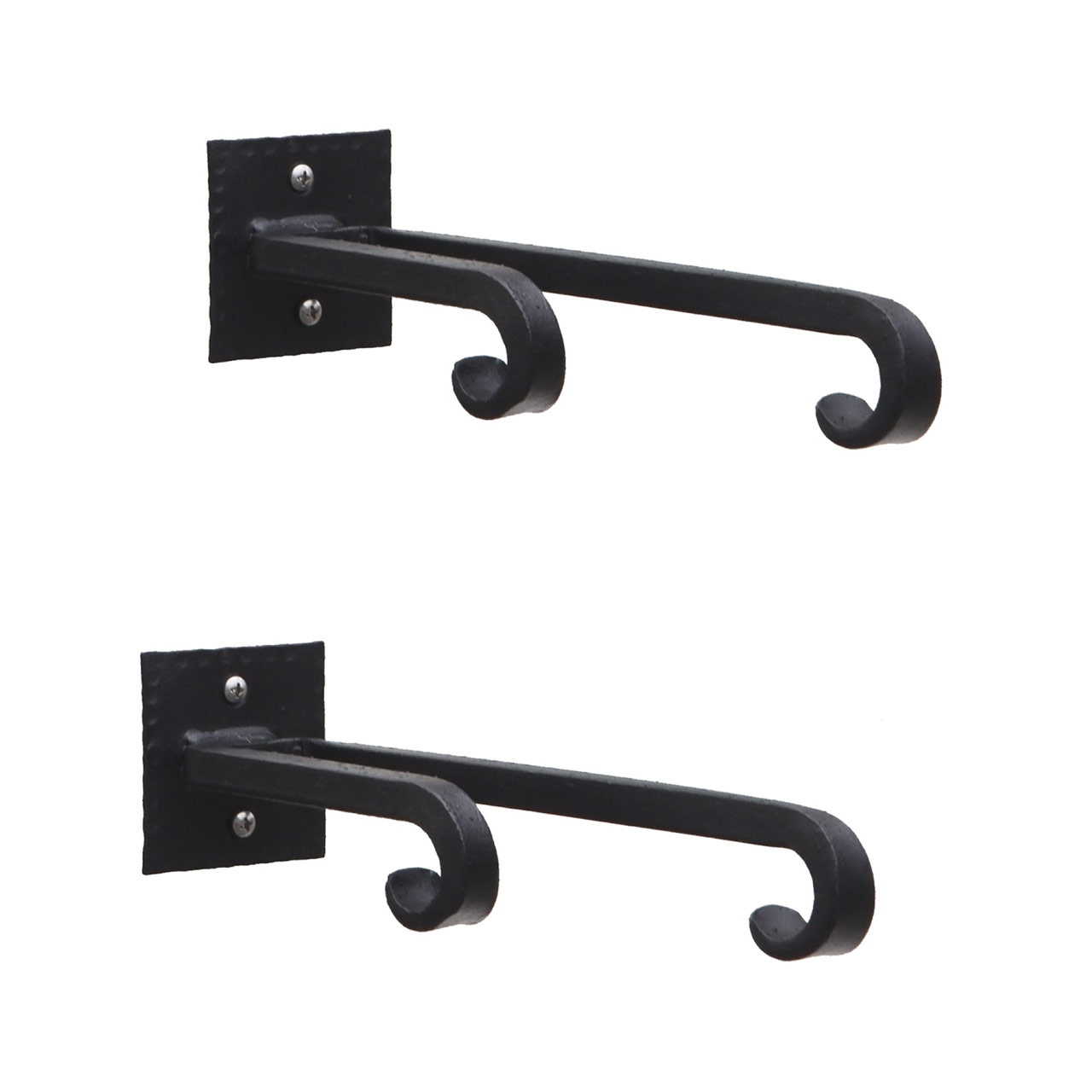 - Hand-forged from wrought iron, these sturdy wall brackets are made from square stock with soft curving hooks. Suitable for indoor and outdoor use, they have a black powder coated finish.