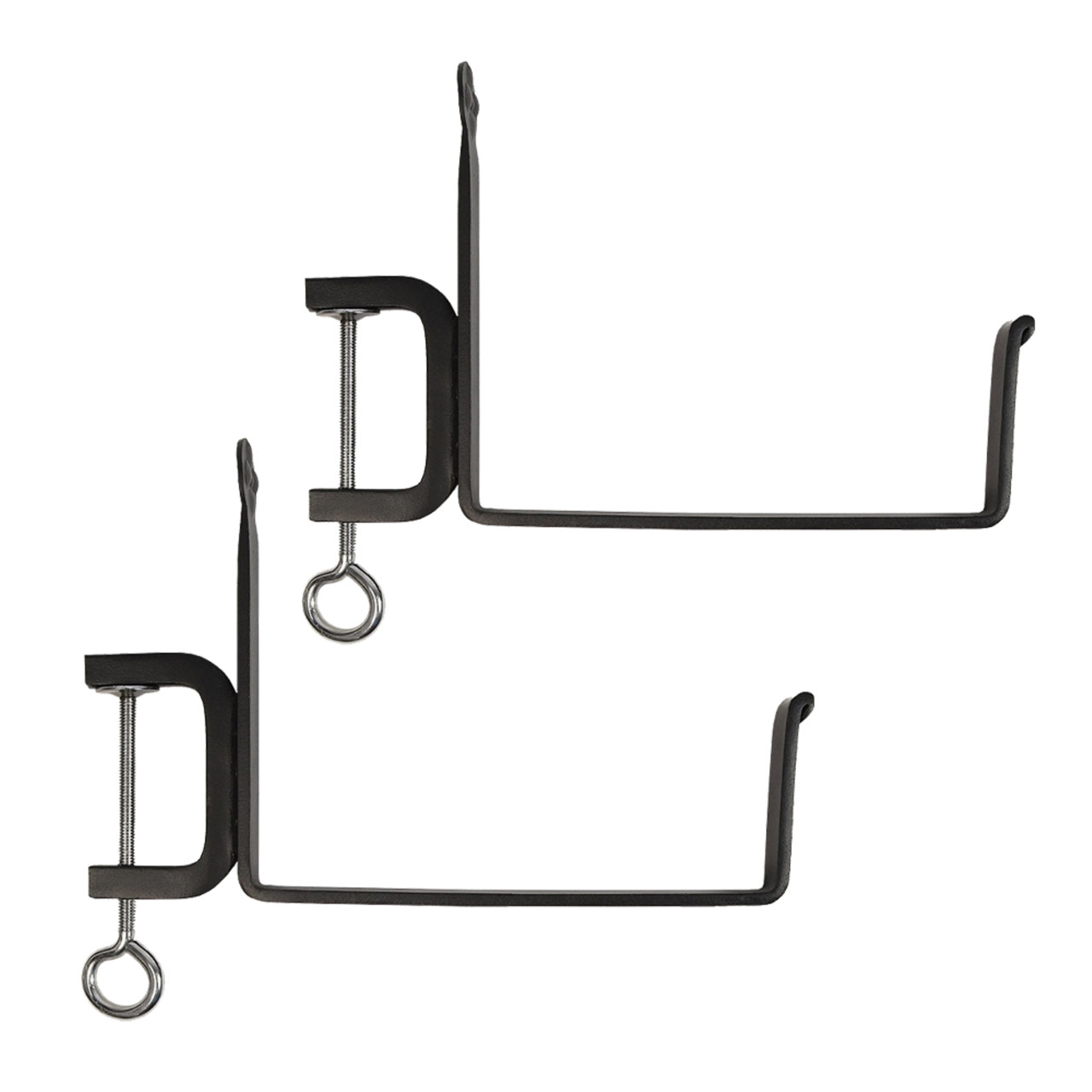 Add curb appeal to a front porch, create a container garden, or decorate with seasonal plantings on a balcony or deck. This Medium Copper Flower Box Kit with Clamp Brackets has two brackets that simply and securely hold our Medium Copper Plated Galvanized Flower Box planter. The sturdy brackets are made from wrought iron with a durable Black powder coated Finish. For easy installation, place the two C-clamp style brackets at the desired width apart and hand tighten to your railing. Fill the box with favorite plants and place within the brackets. Kits are available in all four Flower Box colors, in three sizes, or with top-mounted or Railing Brackets.