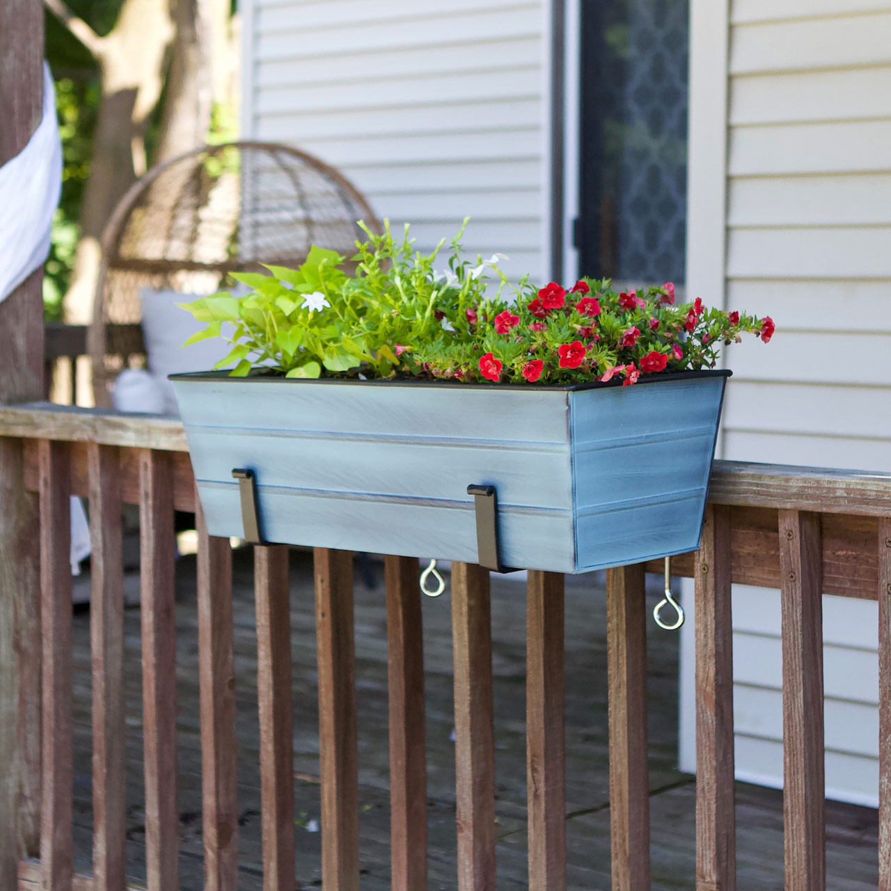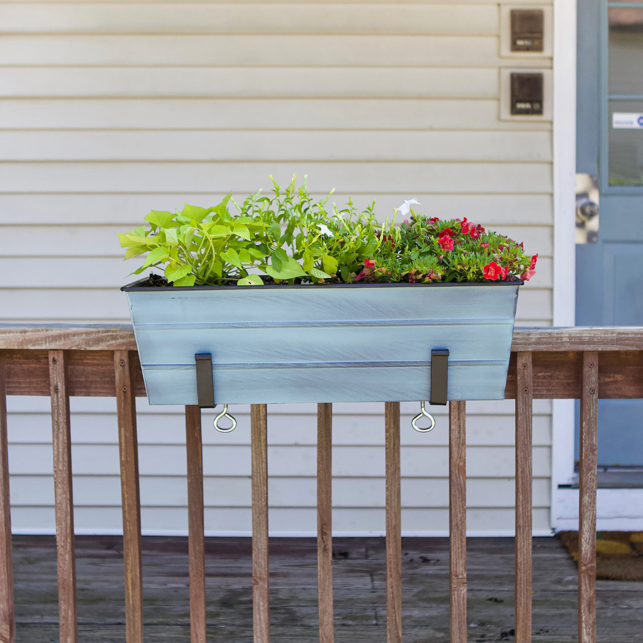 - Two 8-inch Clamp-On Brackets hold our Medium Nantucket Blue Flower Box planter