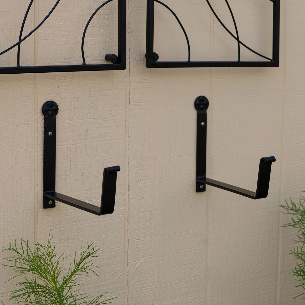 - Wrought iron Wall Brackets project 9 1/4-in from the wall x 8-in H, and are finished with Black powder coating for maximum weather resistance