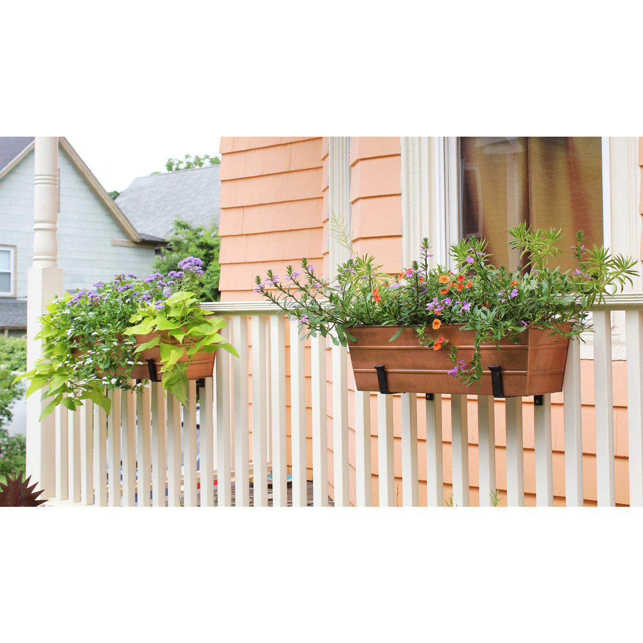 - Two 8-inch Wall-Mounted Flower Box Brackets hold our Medium Copper Flower Box planter