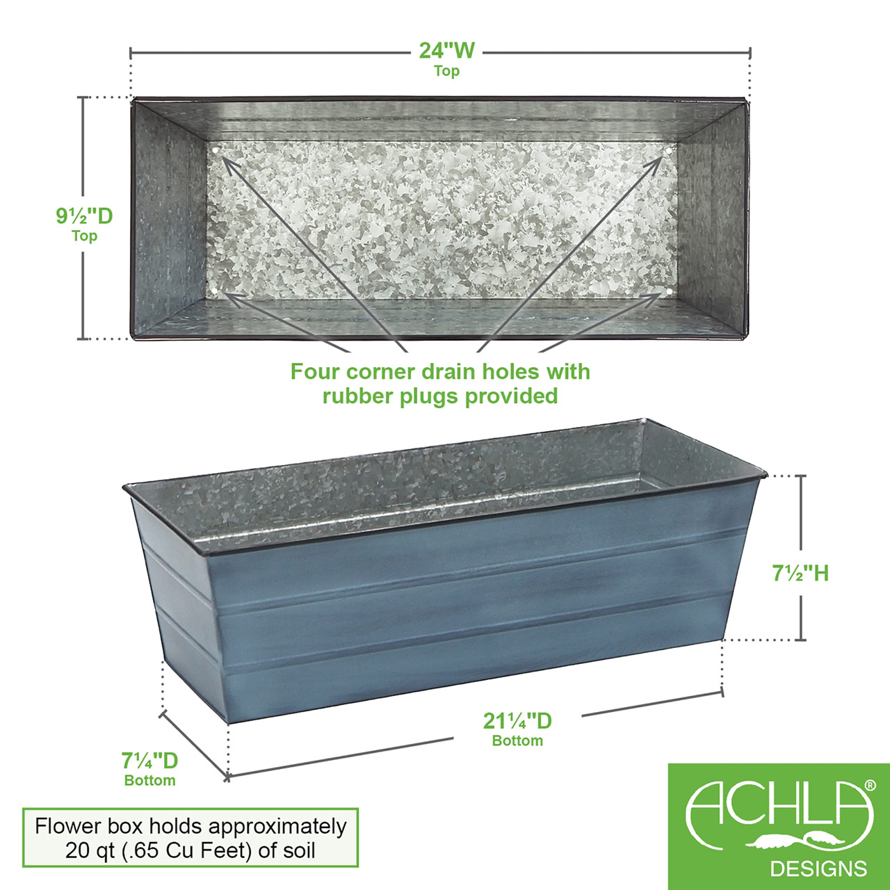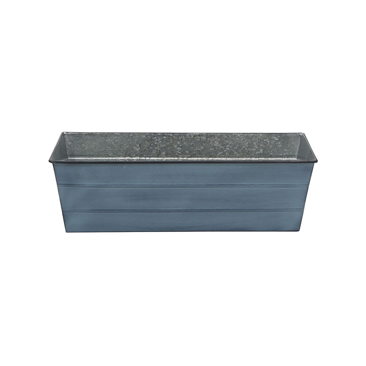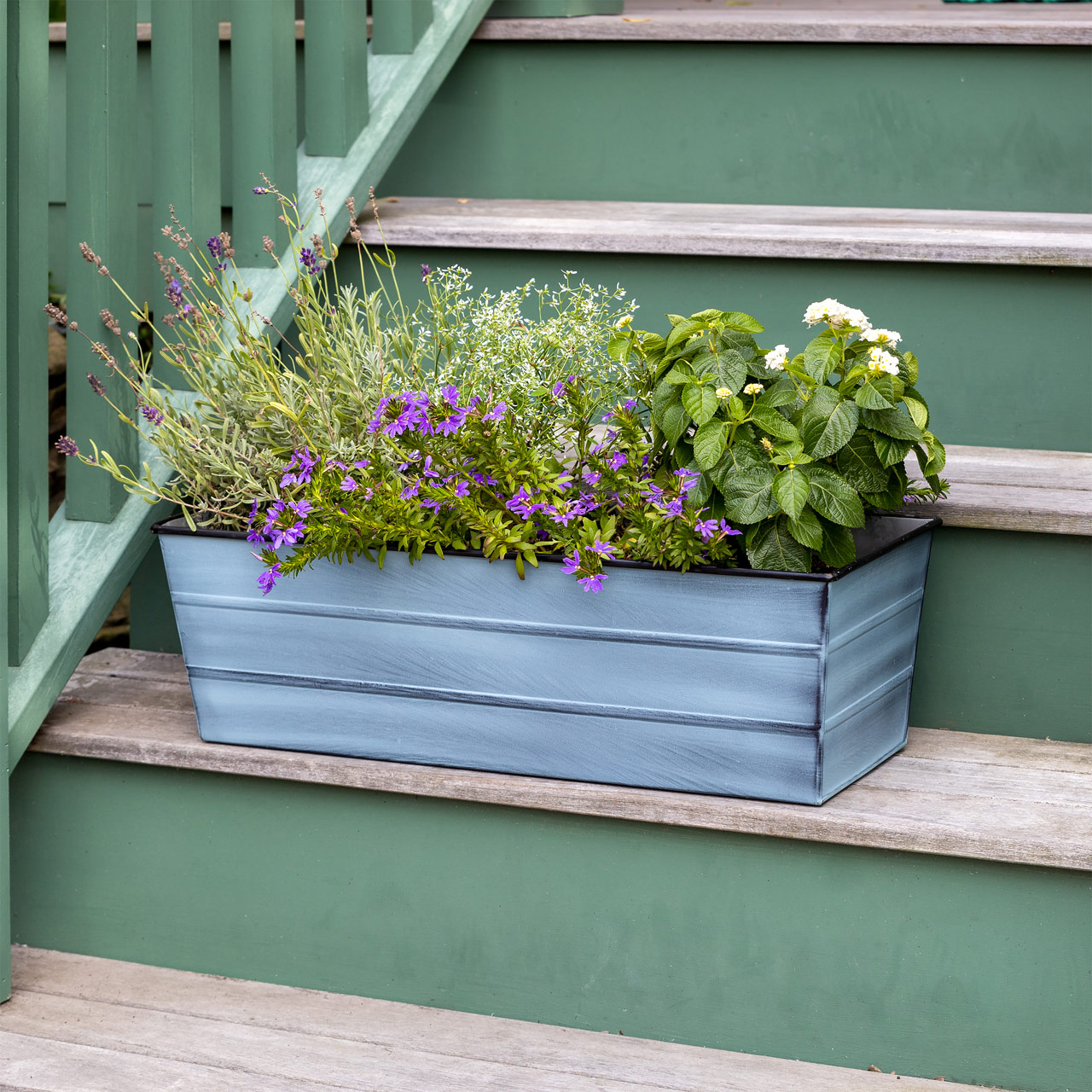 - Medium Flower Boxes measure 24-in L x 9.5-in W x 7.5-in H, made of Galvanized Steel with a slate blue patina finish