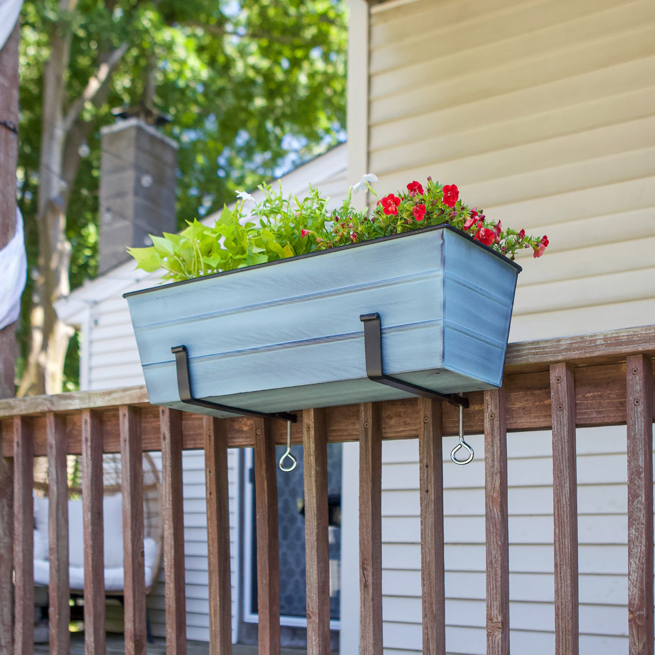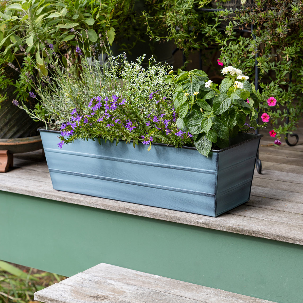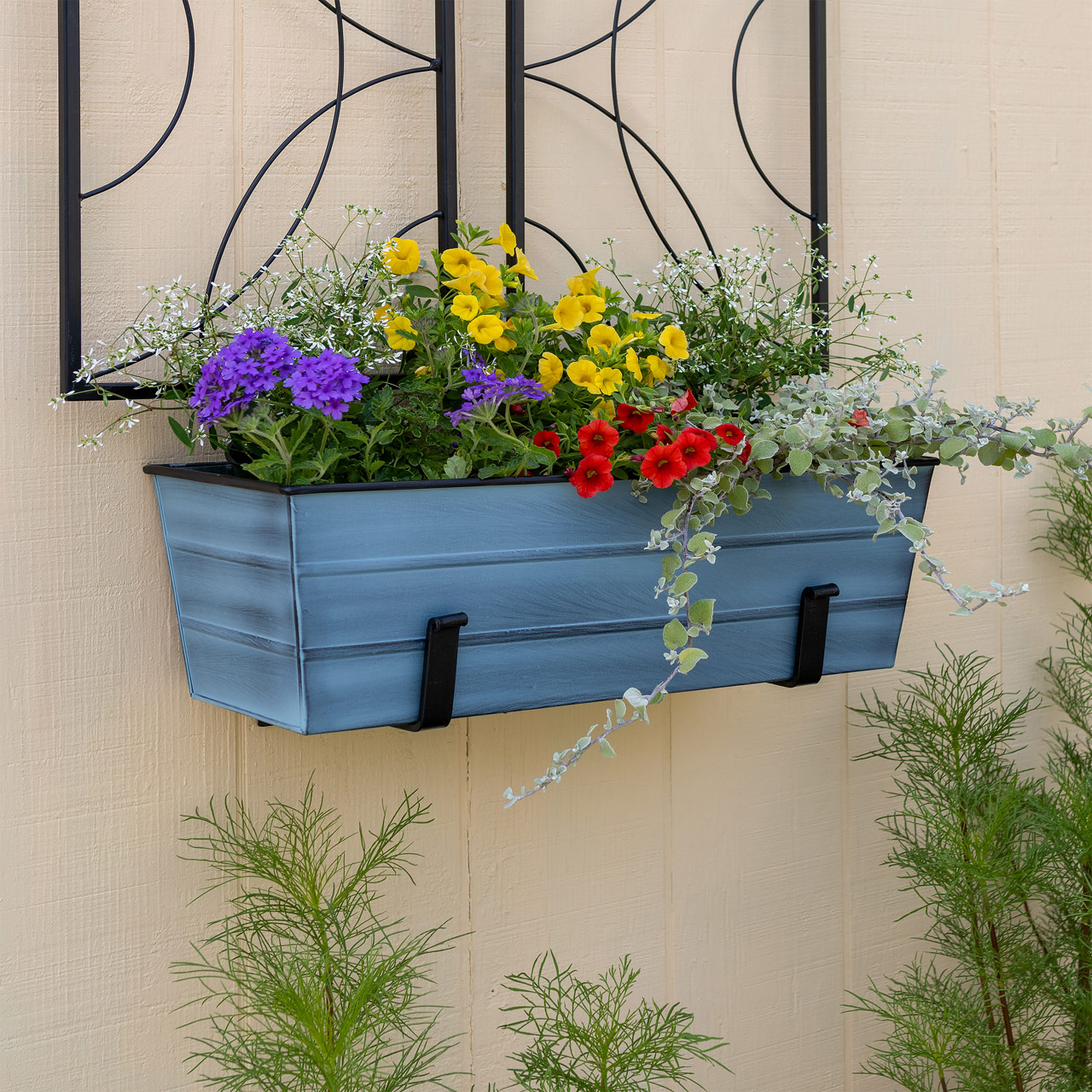 - Medium Flower Boxes measure 24-in L x 9.5-in W x 7.5-in H, made of Galvanized Steel with a slate blue patina finish