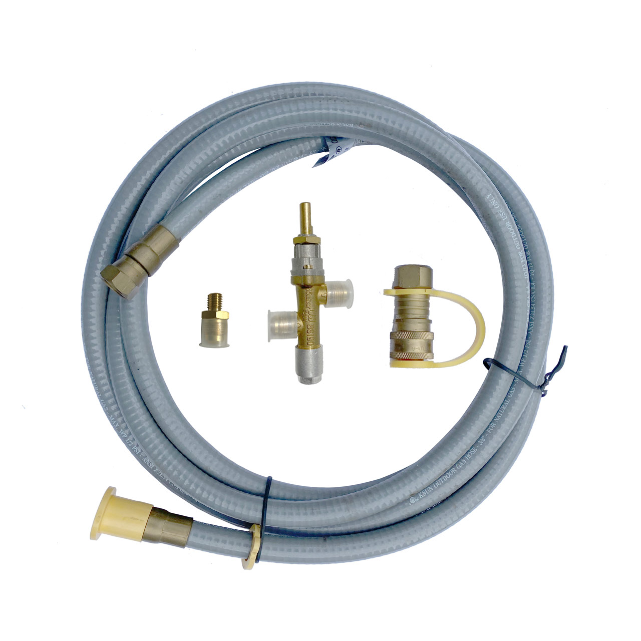 The Modeno 40,000 BTU Natural Gas Conversion Kit is crafted for use with OFG115, OFG116, OFG119, OFG138, OFG150, OFG152, and OFG154 fire tables, offering all the essential parts to smoothly switch from propane to natural gas, delivering steady heat and dependable performance for countless cozy gatherings. Includes a brass orifice, component fitting, and a 10 ft gas hose. WARNING: This product can expose you to chemicals known to the State of California to cause cancer and birth defects or other reproductive harm. For more information, visit www.P65Warnings.ca.gov.