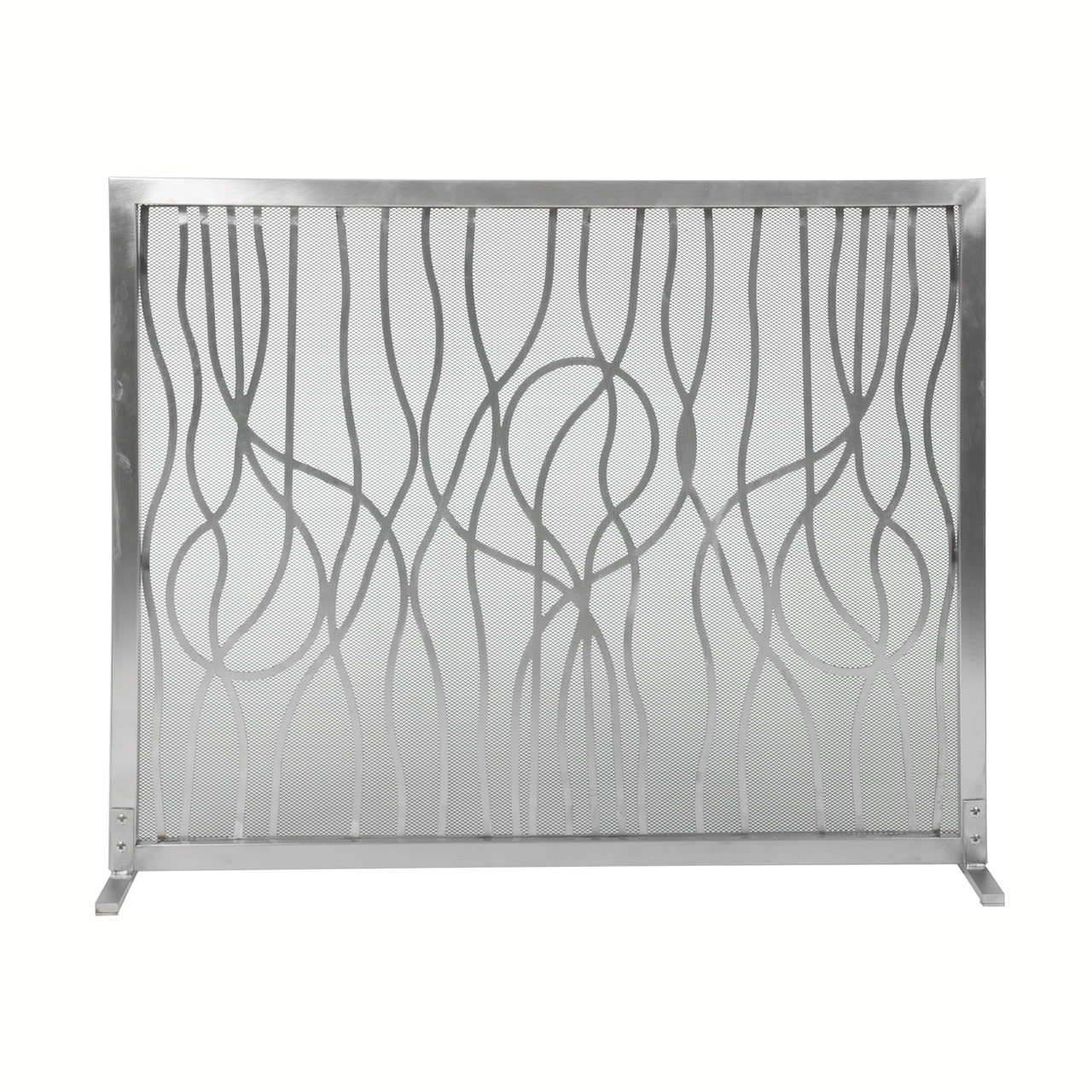 Modern Stainless Steel Fireplace Panel Screen - Abstract Design - 31"H x 39"W x 10"D