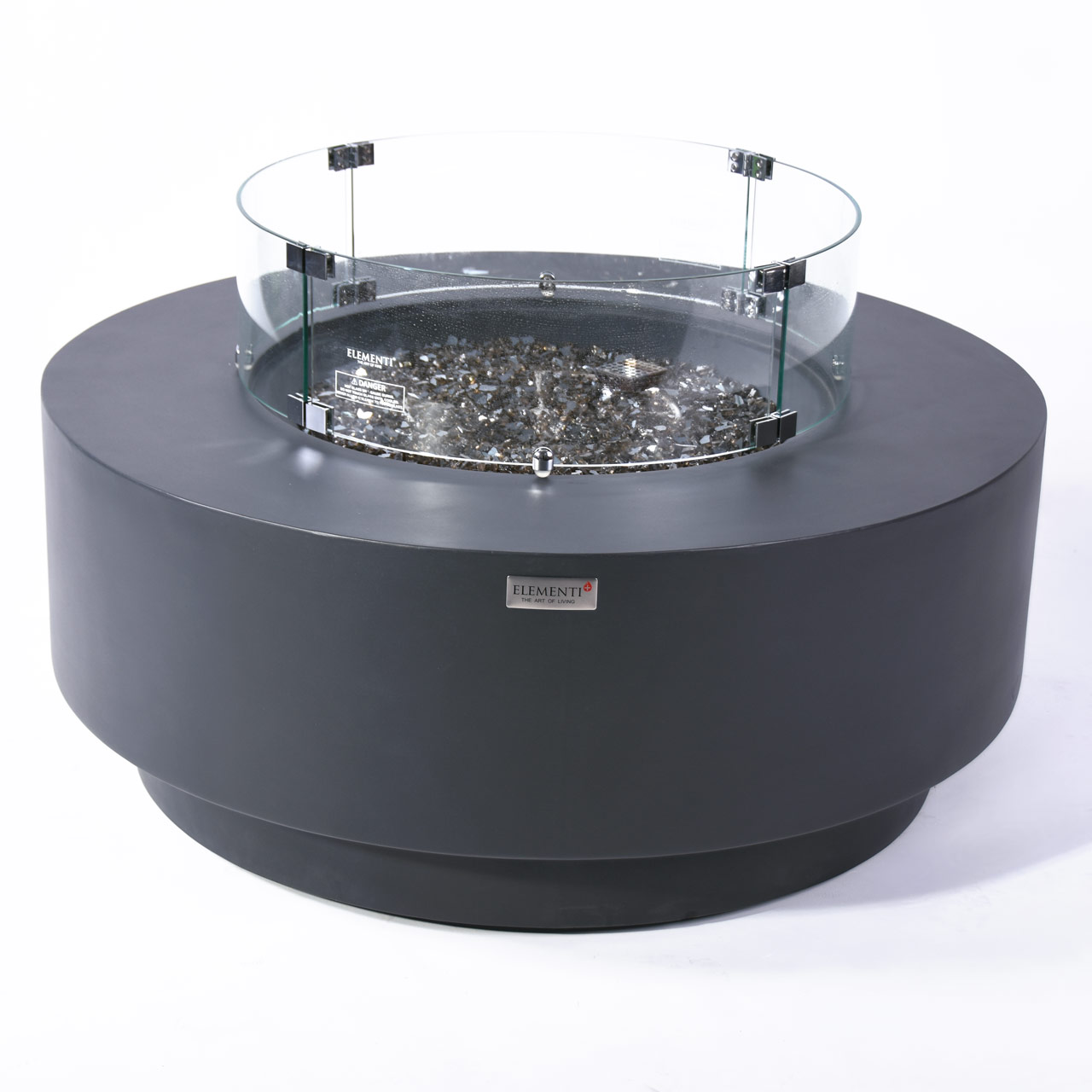 Bring timeless warmth and modern durability to your outdoor space with this premium fire pit, featuring a handcrafted glass-fiber reinforced concrete body for a refined, natural look built to withstand the elements. At its center is a 12-inch burner housed in a 17.8" round stainless steel pan—both constructed from 16-gauge, 304 stainless steel—delivering up to 60,000 BTUs (16 KW for CE & UKCA) of clean-burning heat. Effortless to operate with a push-button spark ignition system and certified safe by CSA, CE & UKCA, this fire pit ensures reliable performance and peace of mind. Included are a matching aluminum lid, 29.7 lbs of bronze fire glass, a canvas cover, repair grout/touch-up kit, a 10? hose, and a AAA battery—everything you need to transform your patio into a cozy, elegant retreat. WARNING: This product can expose you to chemicals which are known to the State of California to cause cancer and birth defects or other reproductive harm. For more information, go to www.P65Warnings.ca.gov.