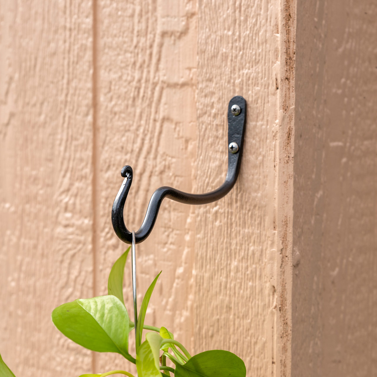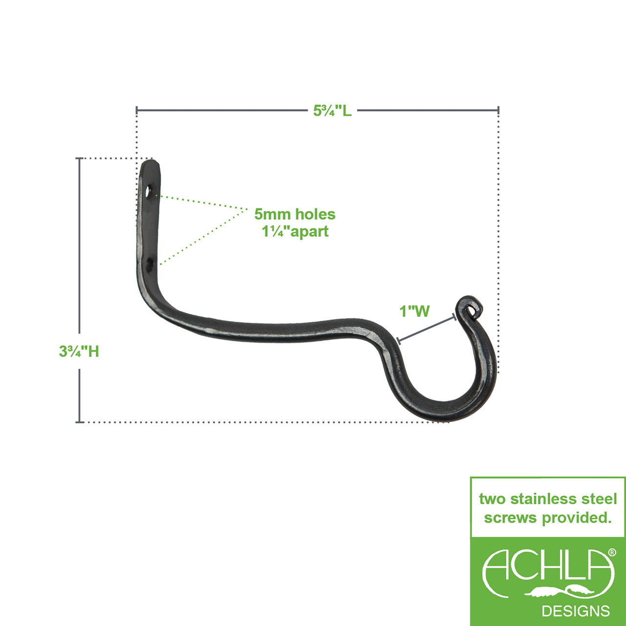 - Hand-forged wrought iron, made from round stock with a gentle curving hook design