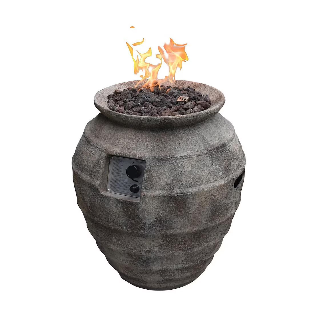 Radiating rustic warmth with a modern twist, this terracotta fire pit is crafted from durable glass-fiber reinforced concrete and finished in a sunbaked texture that recalls the charm of earthen clay. Fueled by propane and sparked to life with a simple push-button ignition, it delivers a cozy 40,000 BTUs of certified heat (CSA, CE & UKCA approved), all while cleverly concealing a standard 20 lb (5 kg) propane tank within its core (tank not included). A fiery bed of 6.6 lbs (3 kg) of lava rock comes included to complete the look, along with a PVC cover to keep this glowing gem protected between gatherings.WARNING: This product can expose you to chemicals known to the State of California to cause cancer and birth defects or other reproductive harm. For more information, visit www.P65Warnings.ca.gov.