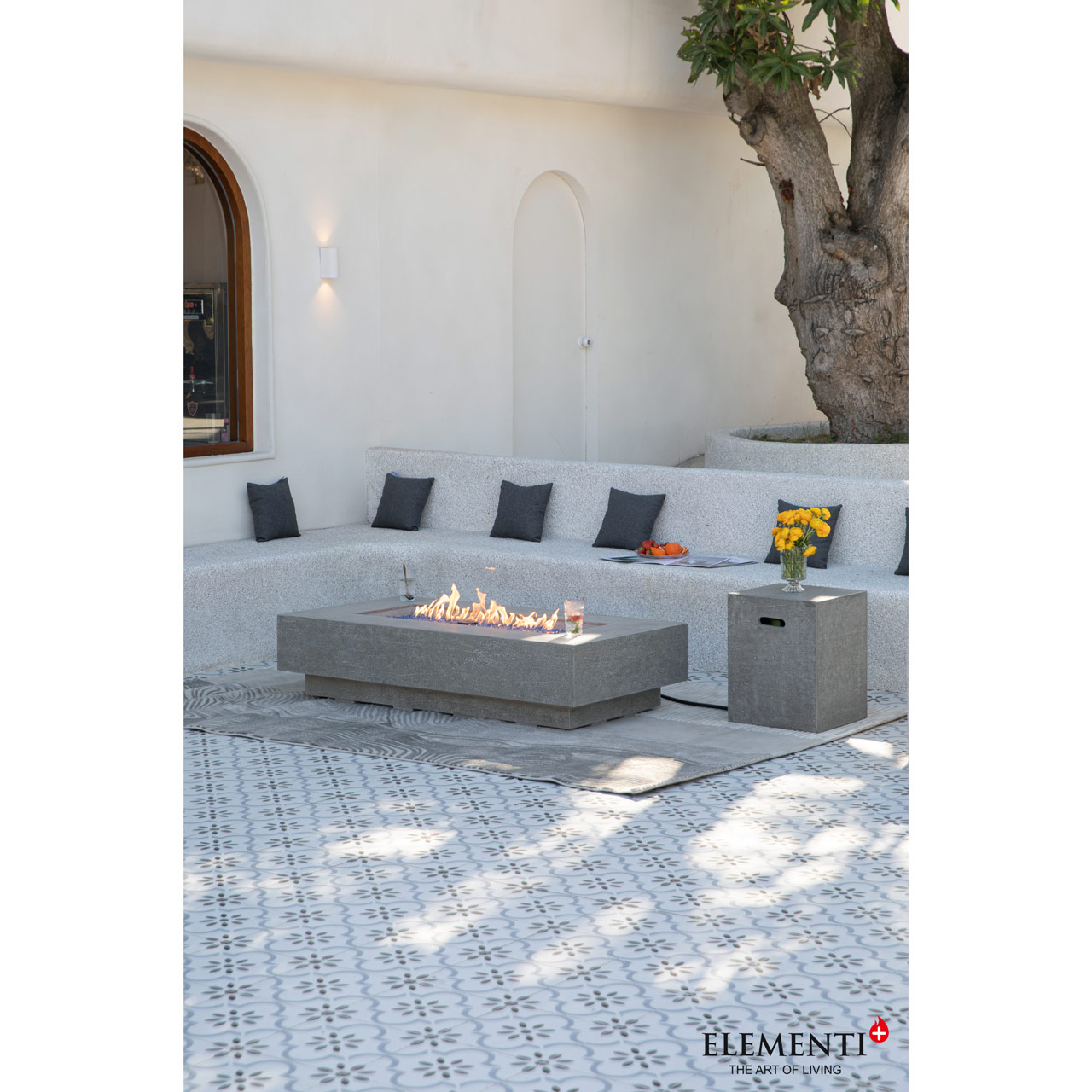 Add bold style and reliable warmth to your outdoor space with this handcrafted fire pit, constructed from durable glass-fiber reinforced concrete for a sleek, weather-resistant finish. At its core is a 30-inch stainless steel burner housed in a 36.6" x 11.1" I-type pan—both made from 16-gauge, 304 stainless steel—delivering up to 60,000 BTUs (16 KW for CE & UKCA) of clean, radiant heat. The push-button spark ignition system provides effortless lighting, while CSA, CE & UKCA certifications ensure safety and performance you can trust. This premium fire feature includes everything you need to enjoy cozy evenings outdoors: an aluminum lid, 39.6 lbs of vibrant Caribbean Blue fire glass, a canvas cover, repair grout/touch-up kit, 10? hose, and a AAA battery. Designed for lasting enjoyment and modern appeal, it's the perfect centerpiece for elevated outdoor entertaining. WARNING: This product can expose you to chemicals which are known to the State of California to cause cancer and birth defects or other reproductive harm. For more information, go to www.P65Warnings.ca.gov.