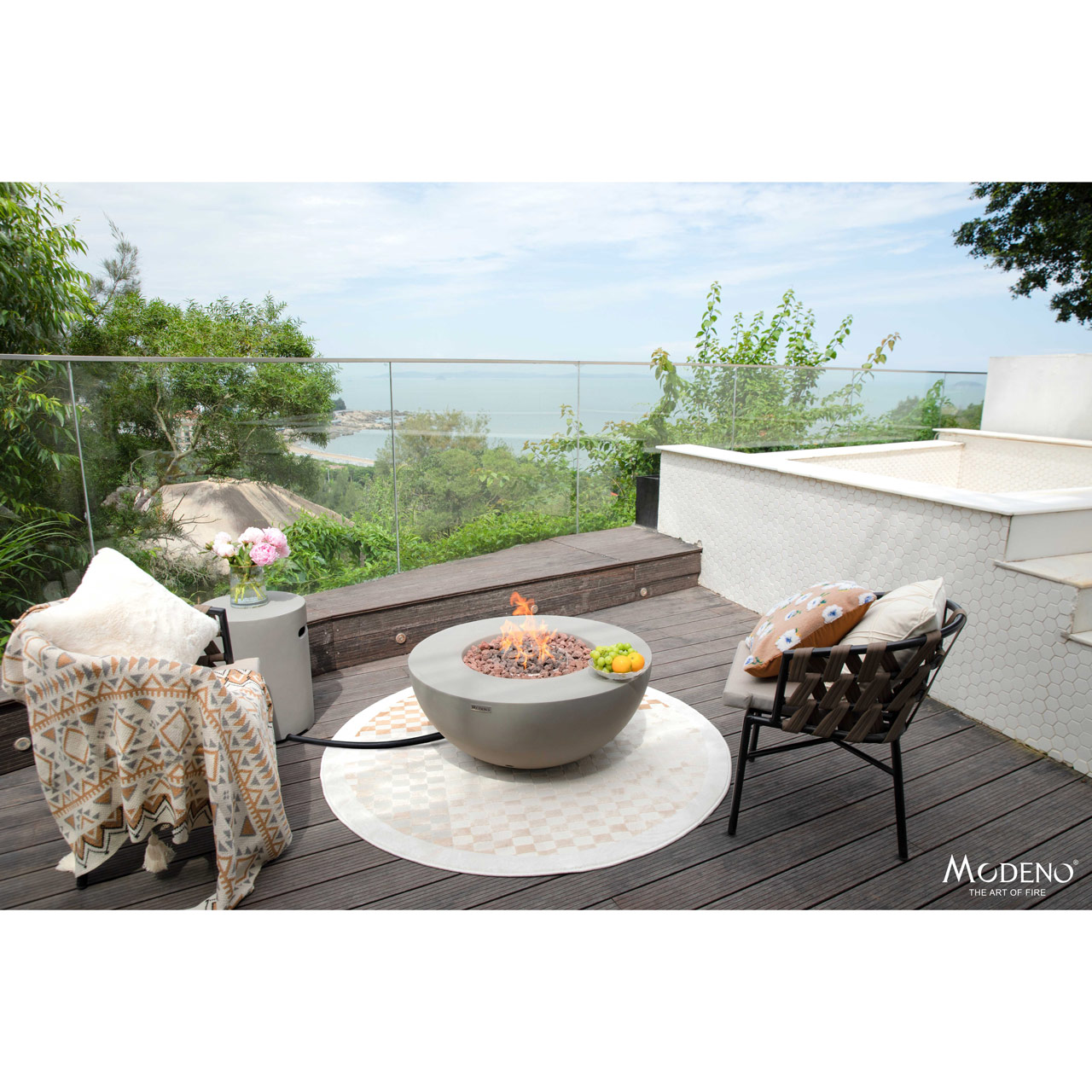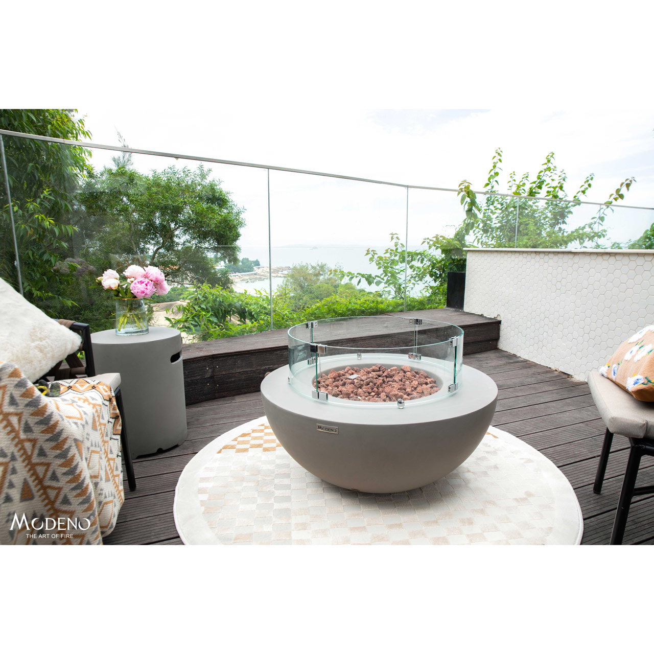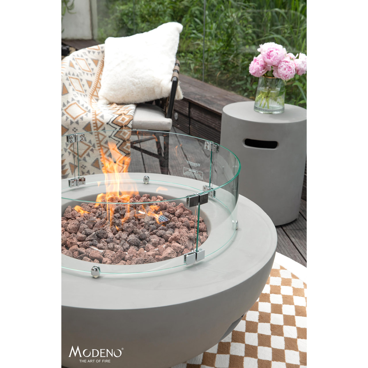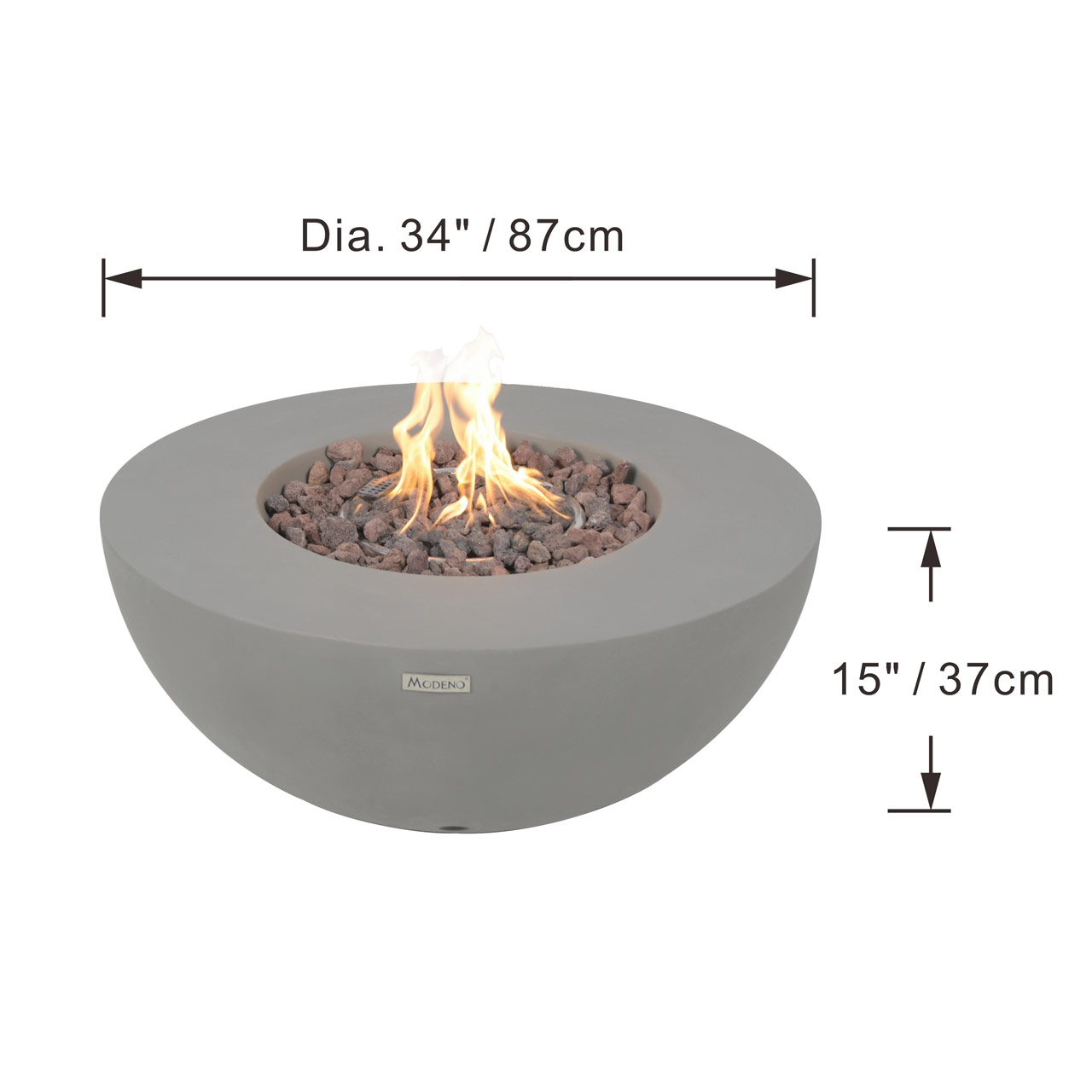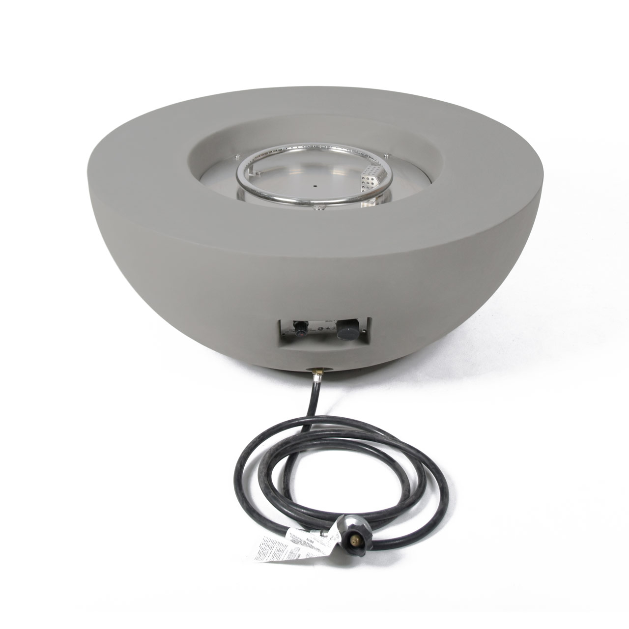 Bring warmth and durability to your outdoor living area with this fire pit, crafted from robust glass-fiber reinforced concrete for a sleek, weather-resistant finish. At its core is a 12-inch stainless steel burner ring and a 17.8-inch burner pan, both made from 18-gauge, 304 stainless steel to deliver long-lasting performance. Producing up to 50,000 BTUs (14.7 KW for CE & UKCA) of clean-burning heat, it features a convenient push-button spark ignition system for effortless operation. Certified by CSA, CE, and UKCA, this fire pit is designed for safety and reliability. Included are 13.2 lbs of lava rock, a PVC cover, repair grout/touch-up kit, 10? hose, and AAA battery, giving you everything you need to create a cozy outdoor ambiance right out of the box. WARNING: This product can expose you to chemicals known to the State of California to cause cancer and birth defects or other reproductive harm. For more information, visit www.P65Warnings.ca.gov.