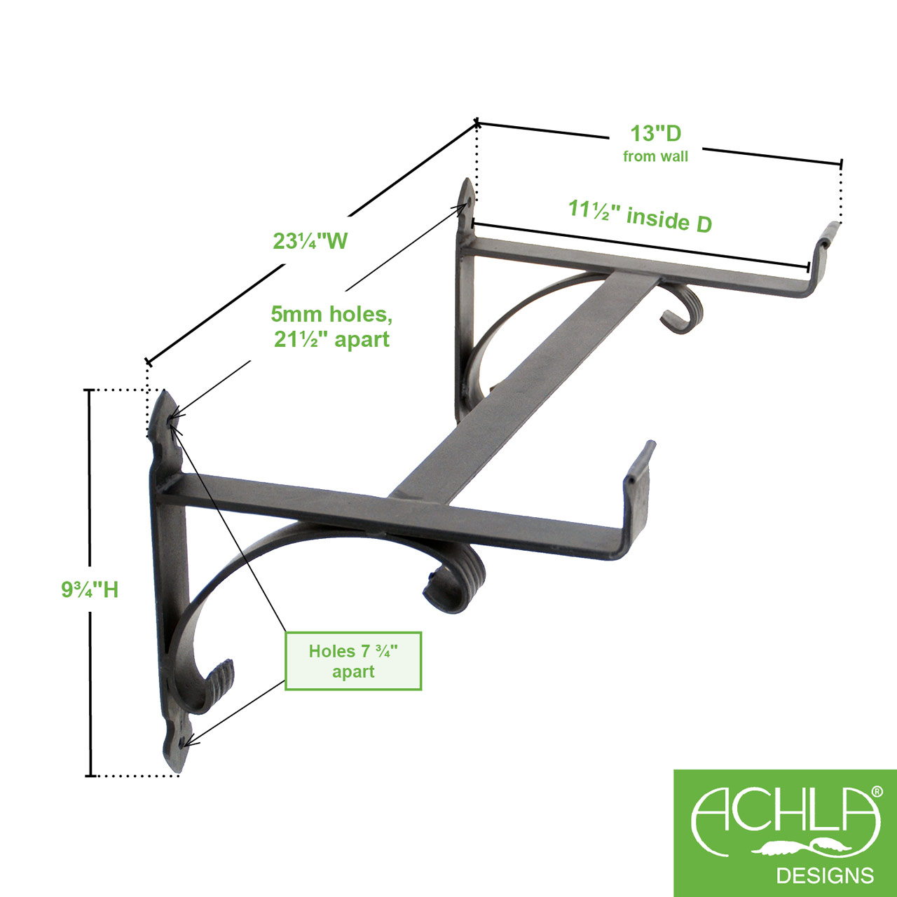 - Decorative wrought iron shelf style bracket for large flower box planters