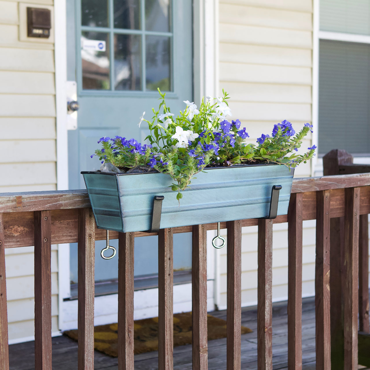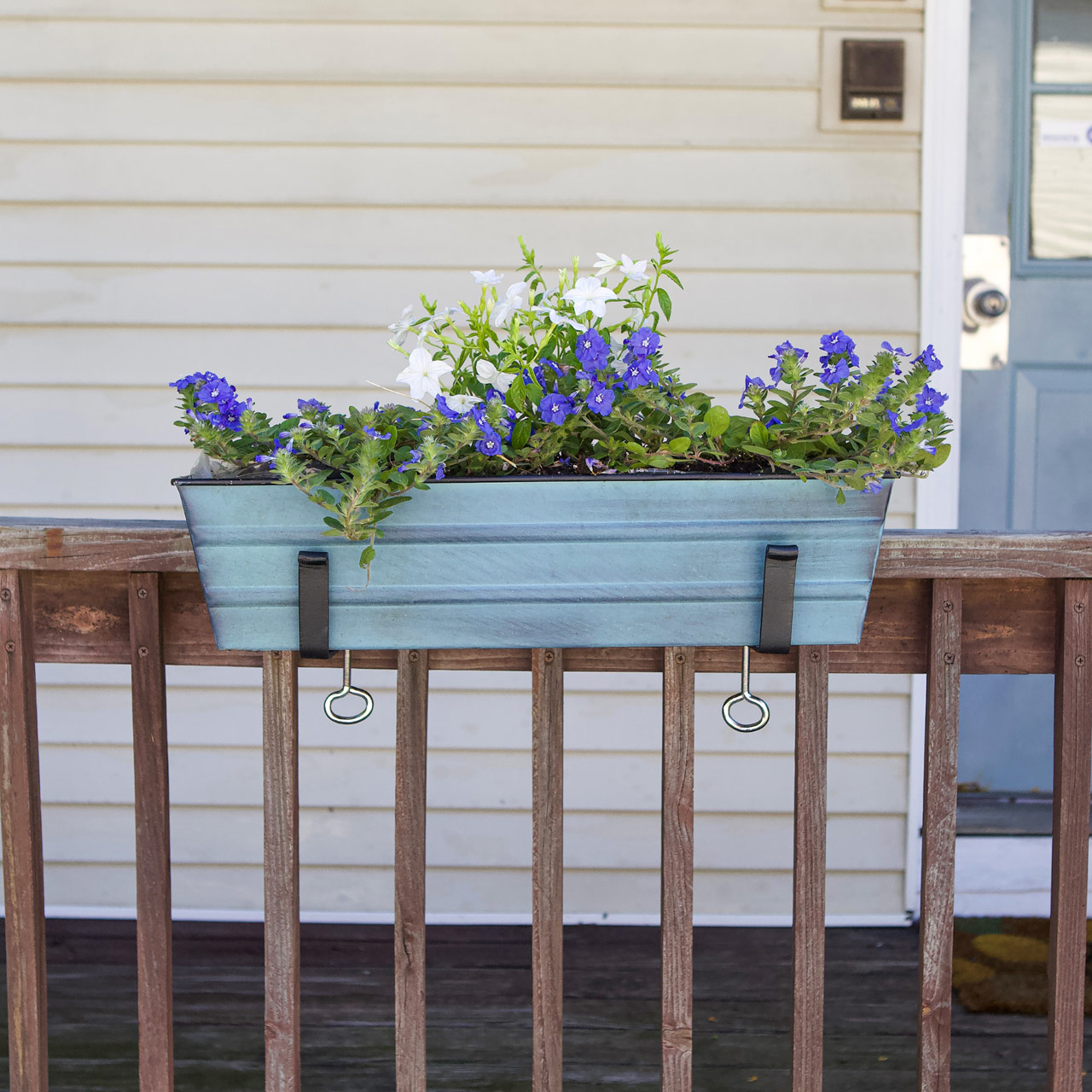 - Small Nantucket Blue Flower Box measures 22-in L x 5-in H, made of galvanized steel with a slate blue patina finish