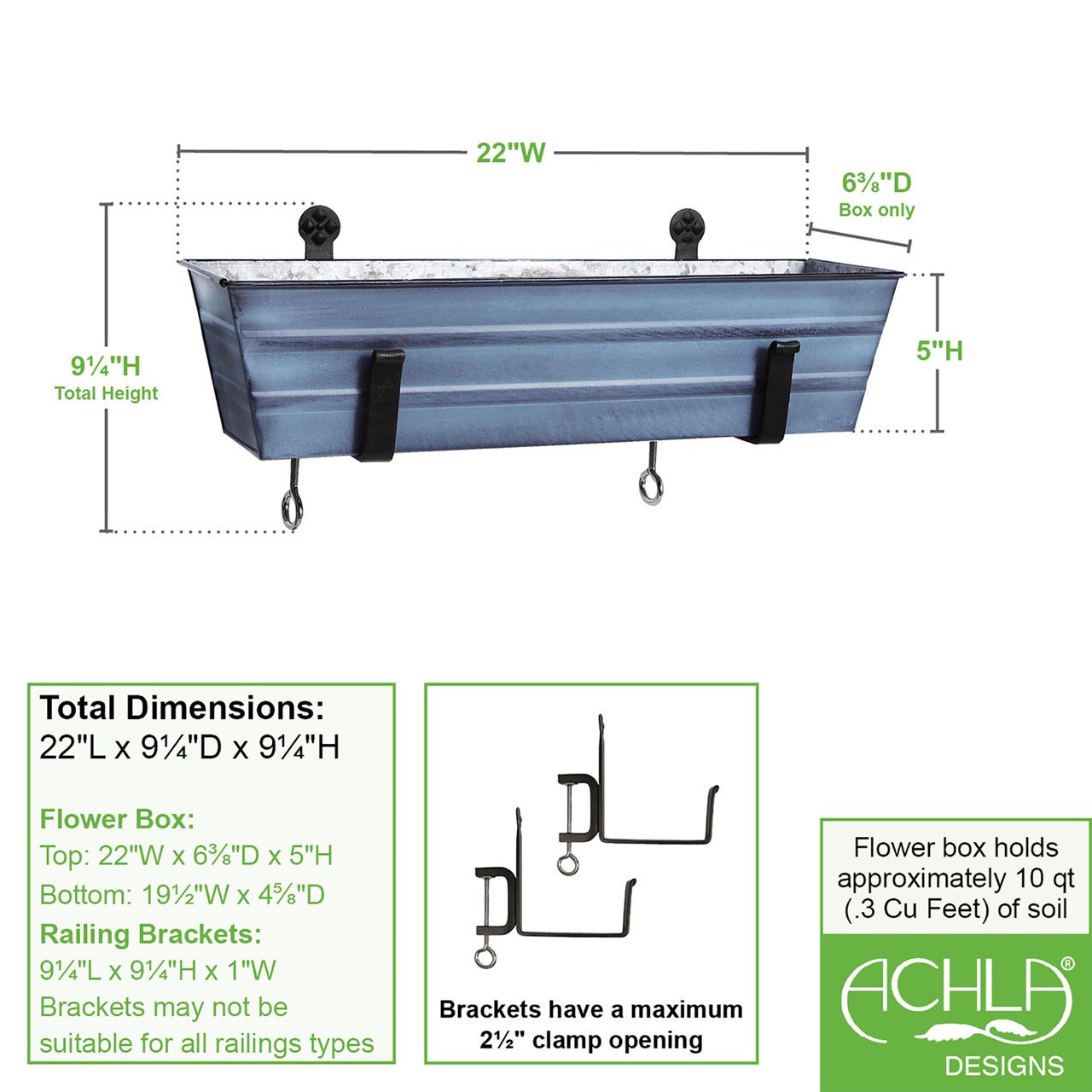 - Two 6-inch Clamp-On Brackets hold our Small Nantucket Blue Flower Box planter
