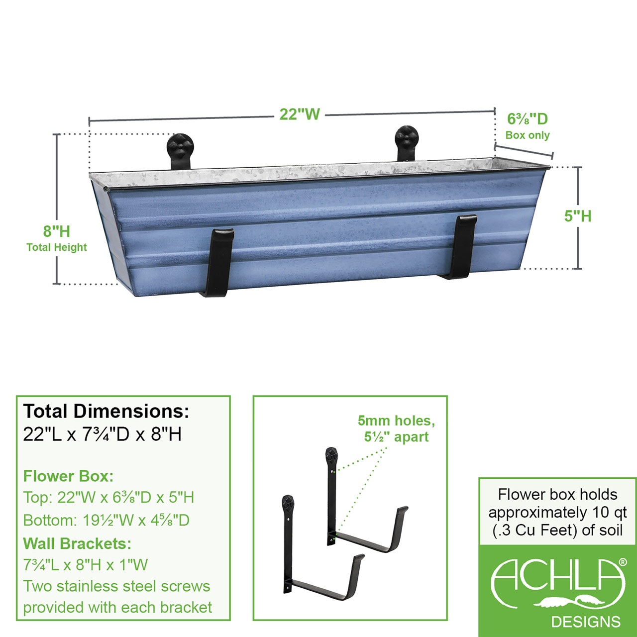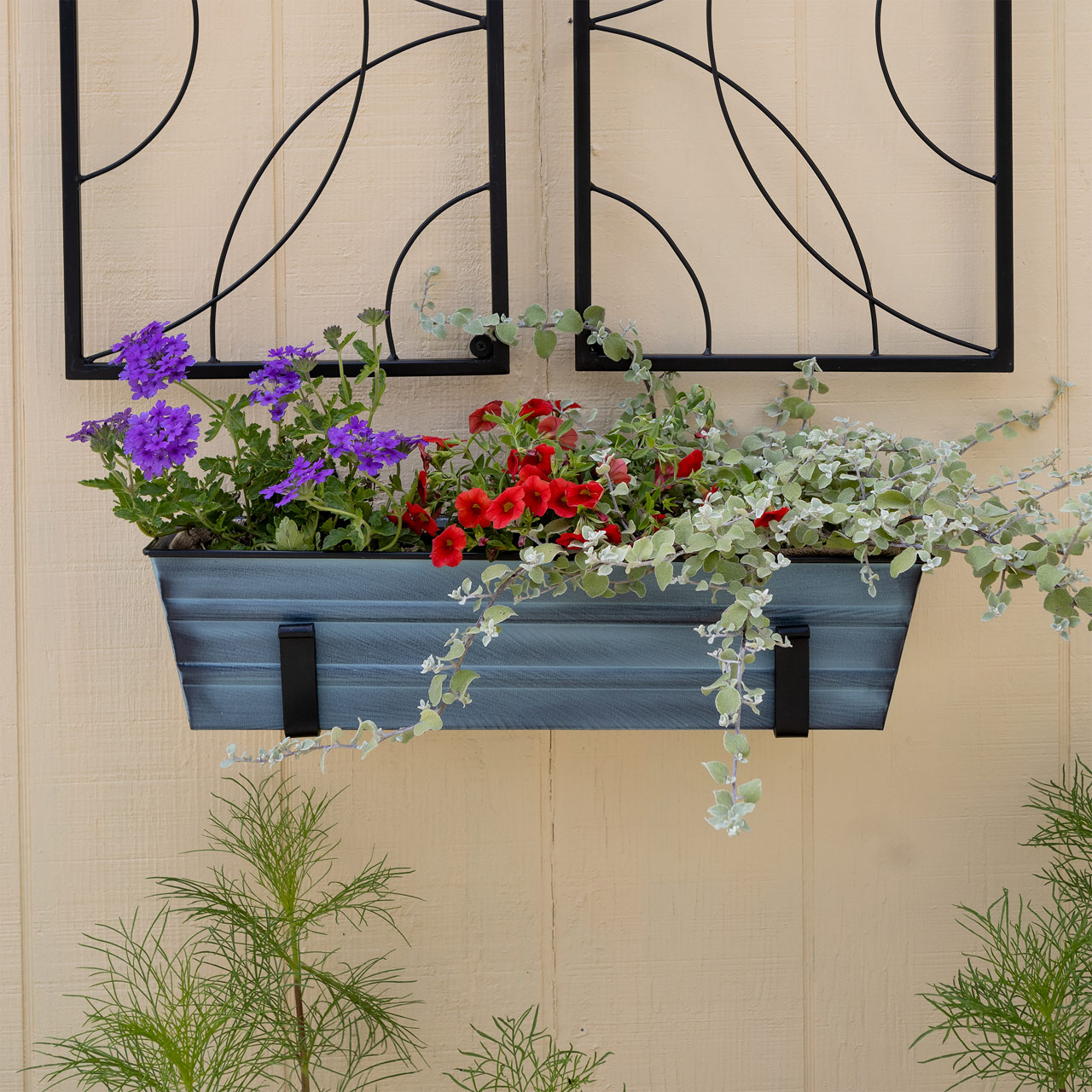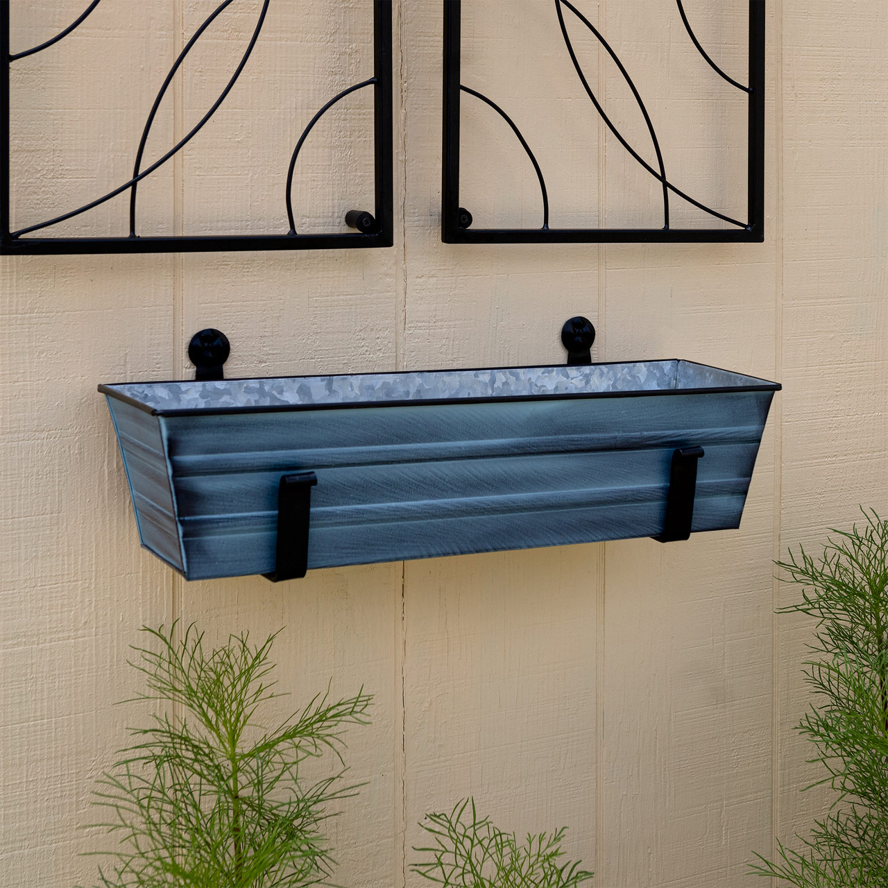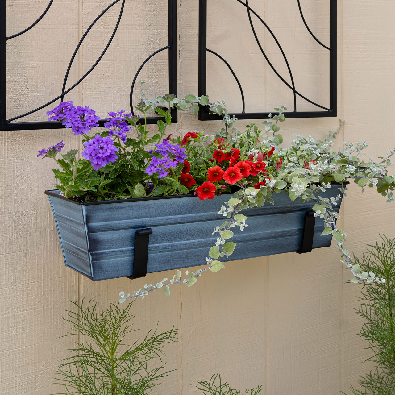 - Two 6-inch Wall-Mounted Flower Box Brackets hold our Small Nantucket Blue Flower Box planter