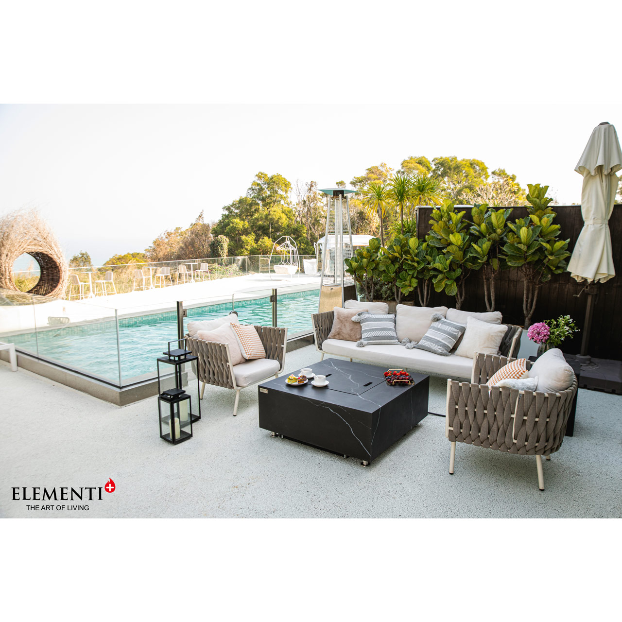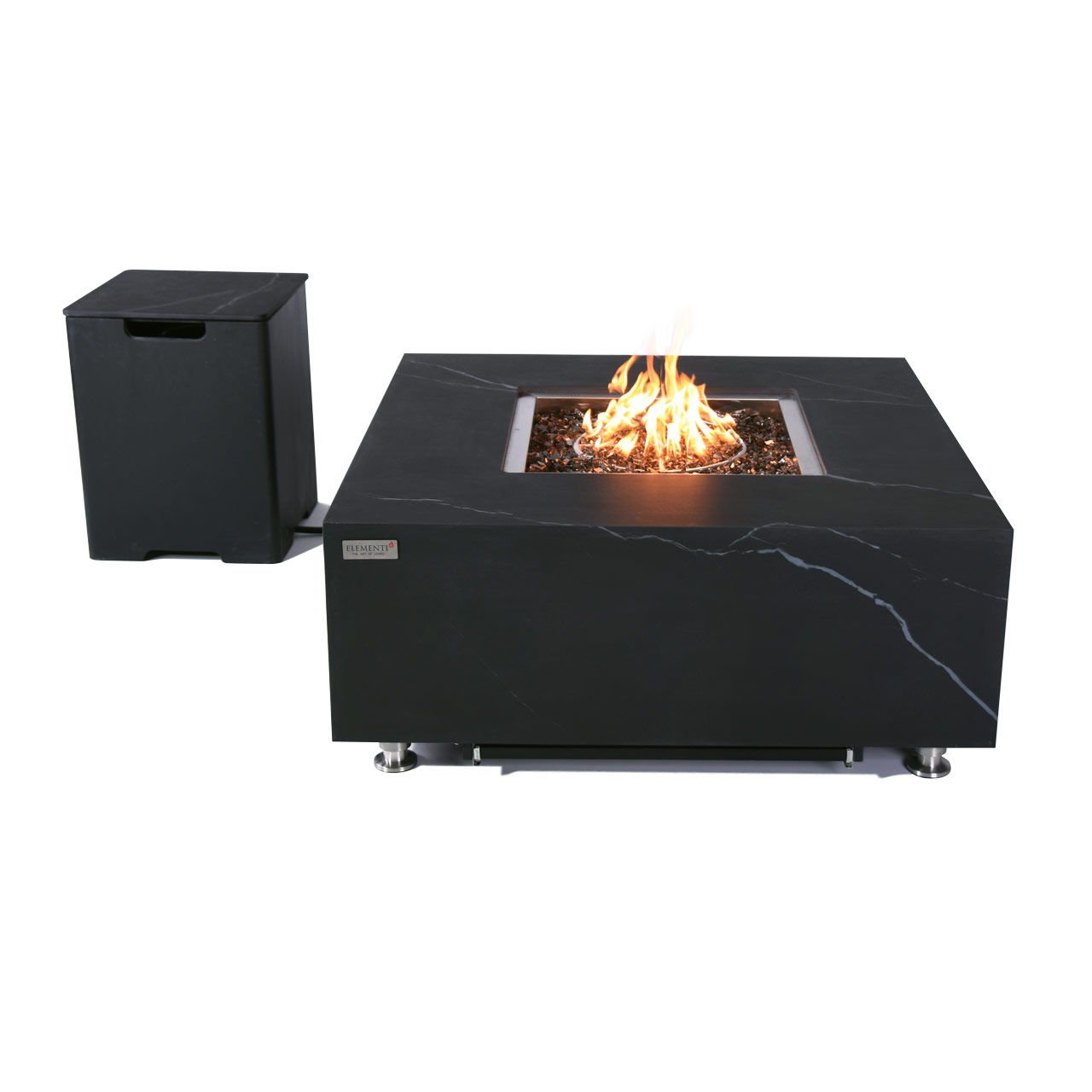 Refined design meets robust performance in this beautifully crafted fire pit, featuring a sophisticated marble porcelain top paired with a sturdy metal frame. At its core lies a 12-inch burner and 20.4" x 20.4" x 2.2" burner pan—both made from 16-gauge, 304 stainless steel—delivering up to 60,000 BTUs (16 KW for CE & UKCA) of clean, efficient heat. The push-button spark ignition system ensures quick and easy lighting, while CSA, CE, and UKCA certifications guarantee safe operation. Designed for lasting outdoor enjoyment, this fire pit includes a porcelain lid (ONF06-103BB), 19.8 lbs of bronze fire glass, a canvas cover, repair grout/touch-up kit, a 10? hose, and a AAA battery. WARNING: This product can expose you to chemicals which are known to the State of California to cause cancer and birth defects or other reproductive harm. For more information, go to www.P65Warnings.ca.gov.
