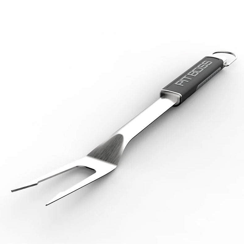 Built for serious grilling, the Pit Boss BBQ Fork is a must-have for lifting, turning, and carving with ease. Made from heavy-duty stainless steel, this durable tool offers long-lasting performance on the grill or smoker. Its large loop provides convenient hanging storage, while a built-in bottle opener adds extra functionality to your cookout experience. Dishwasher safe for easy cleanup, this essential grilling fork keeps your BBQ game strong and your tools always within reach. WARNING: Cancer and Birth Defects or other Reproductive Harm – www.P65Warnings.ca.gov.